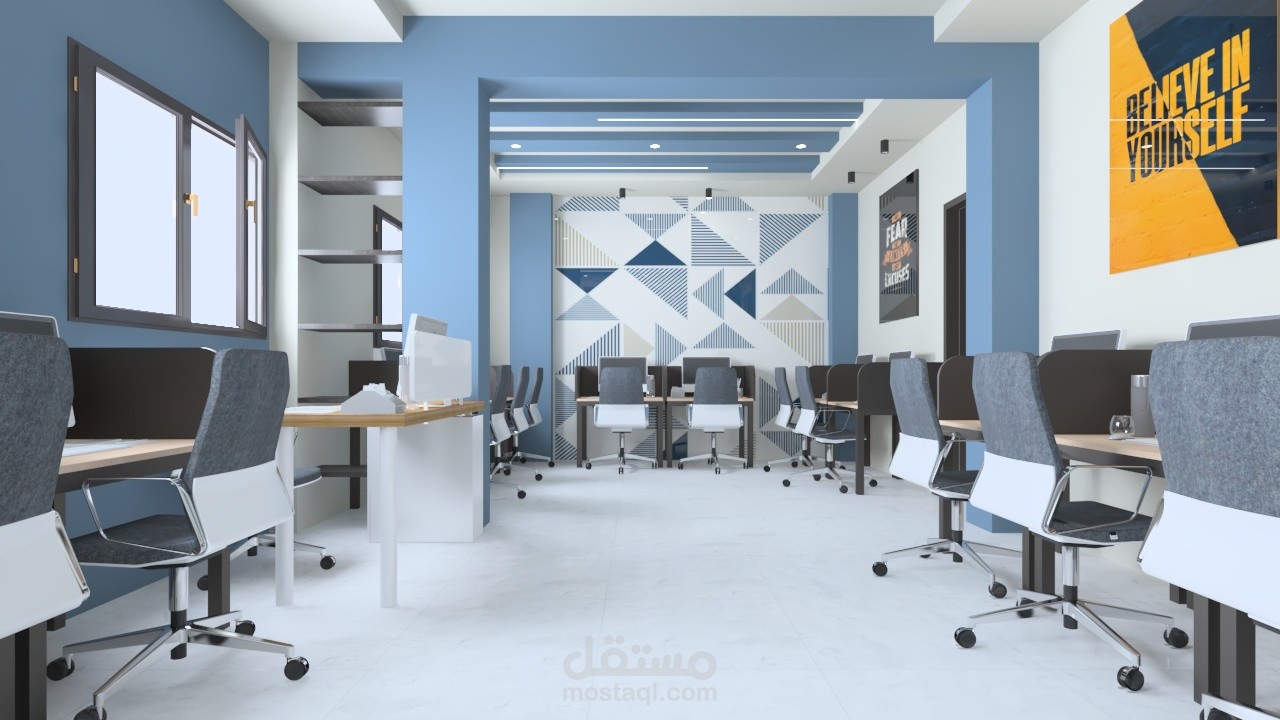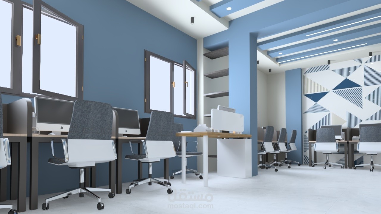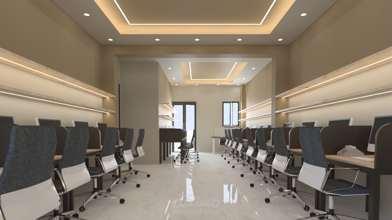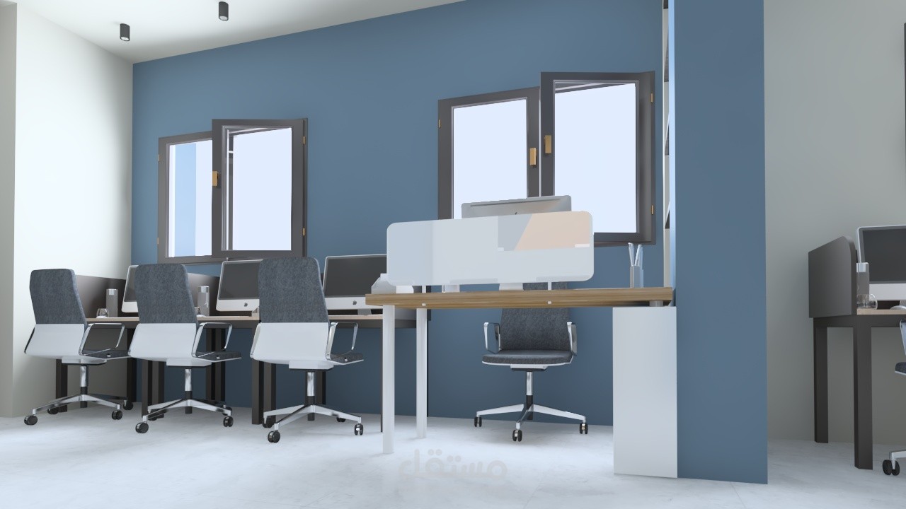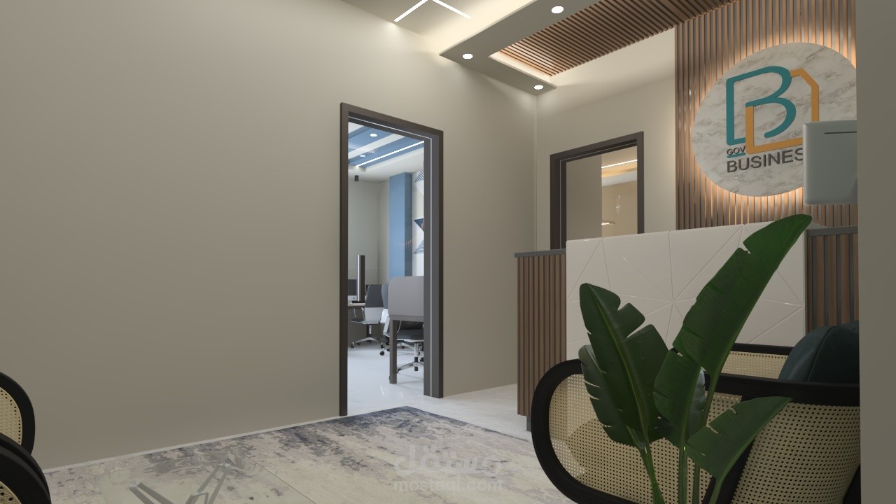 استقبال مكتب شركه وغرف خدمة عملاء مكونه من مجموعه من المكاتب