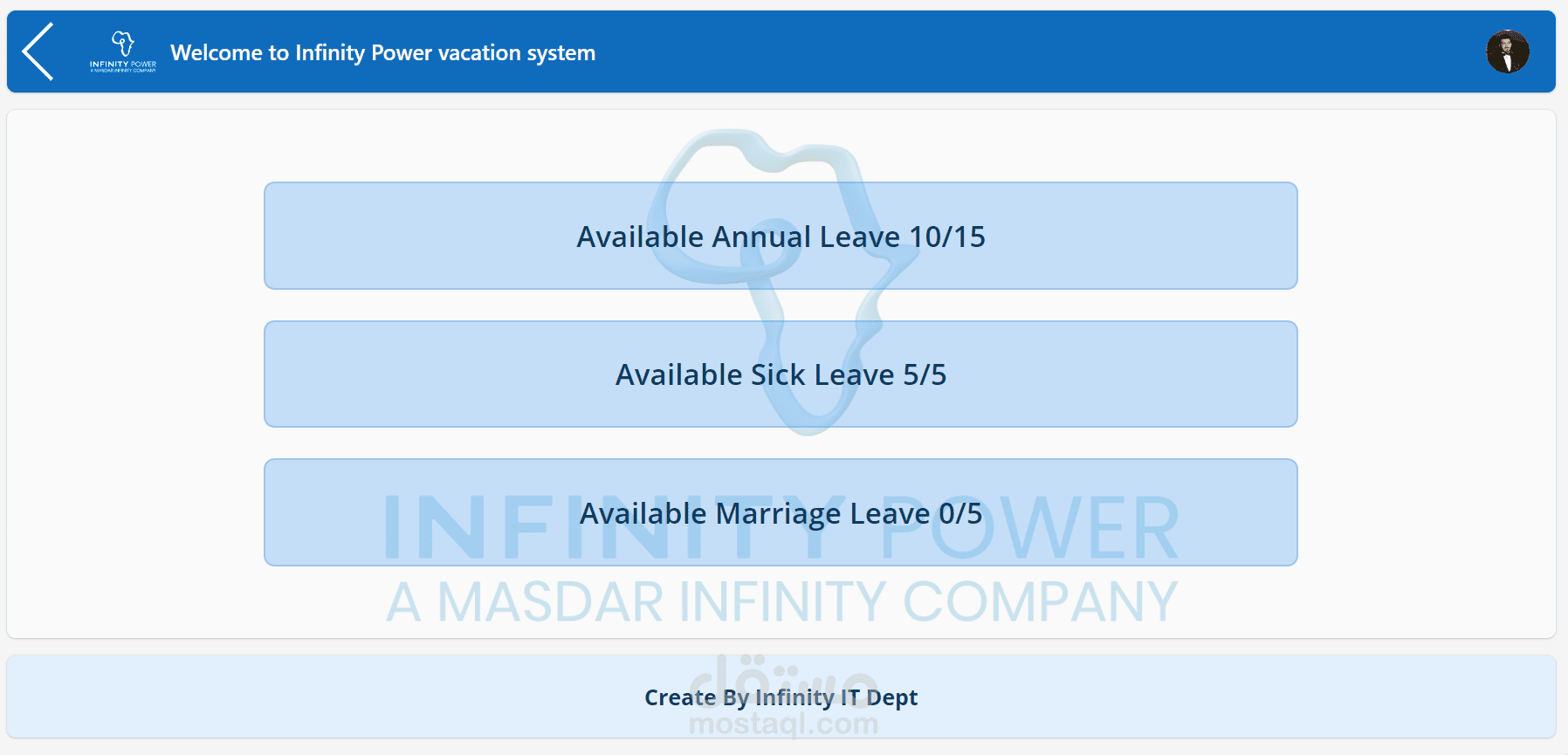 تطبيق سهل يتيح للموظفين معرفه أجازاتهم المتبقيه لهم والتقديم على اجازه جديده و رؤيه الاجازات السابقة وتاريخها