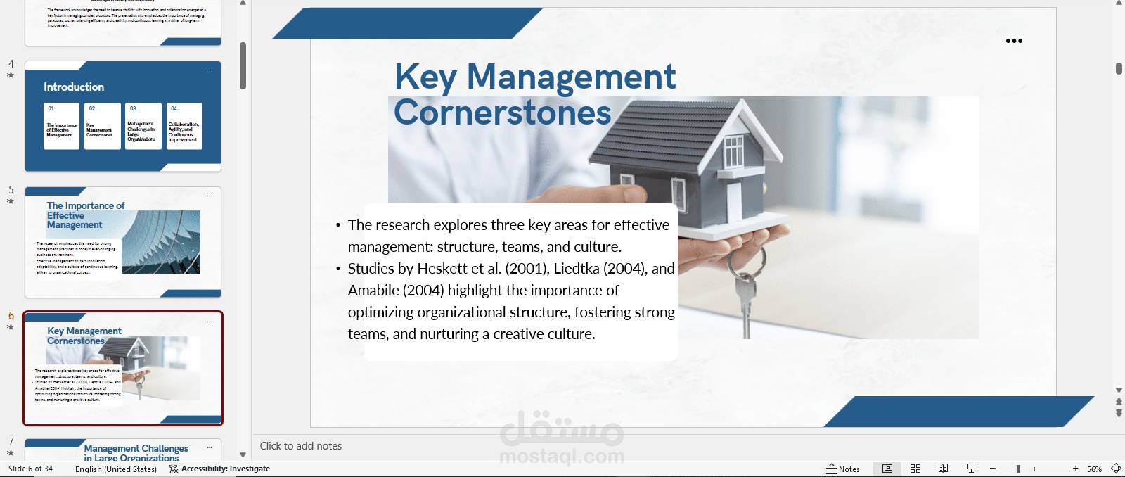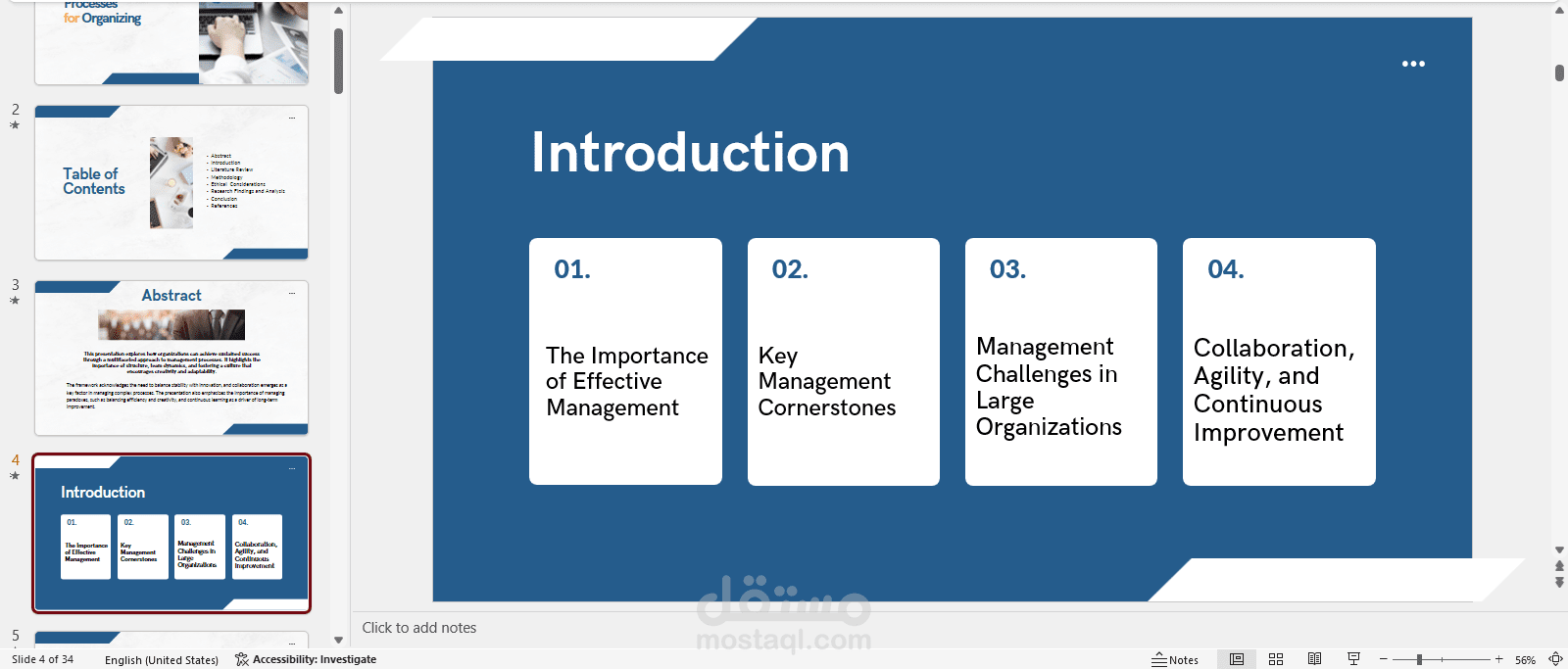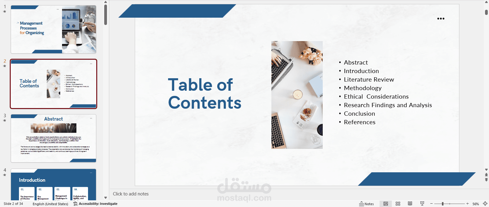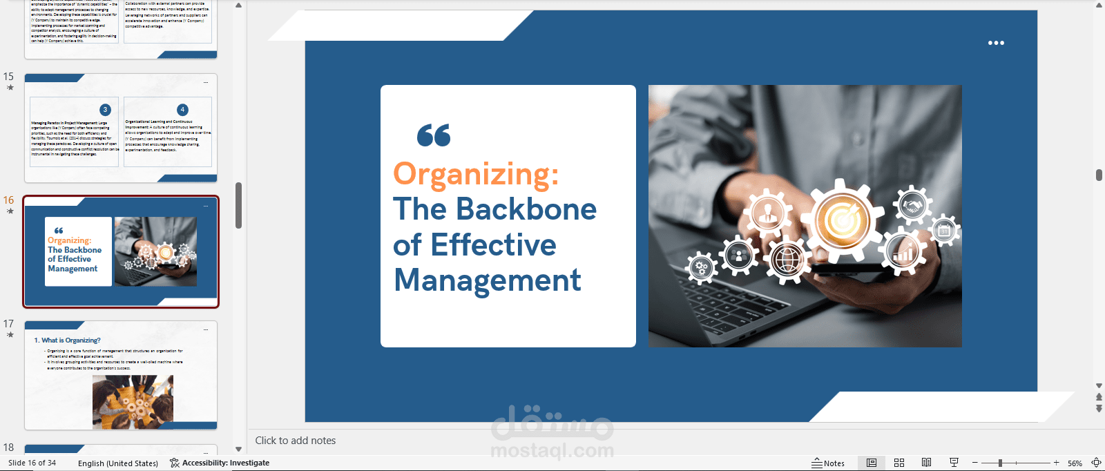 انشاء عرض تقديمي مع كتابة المحتوي: Management Processes for Organizing