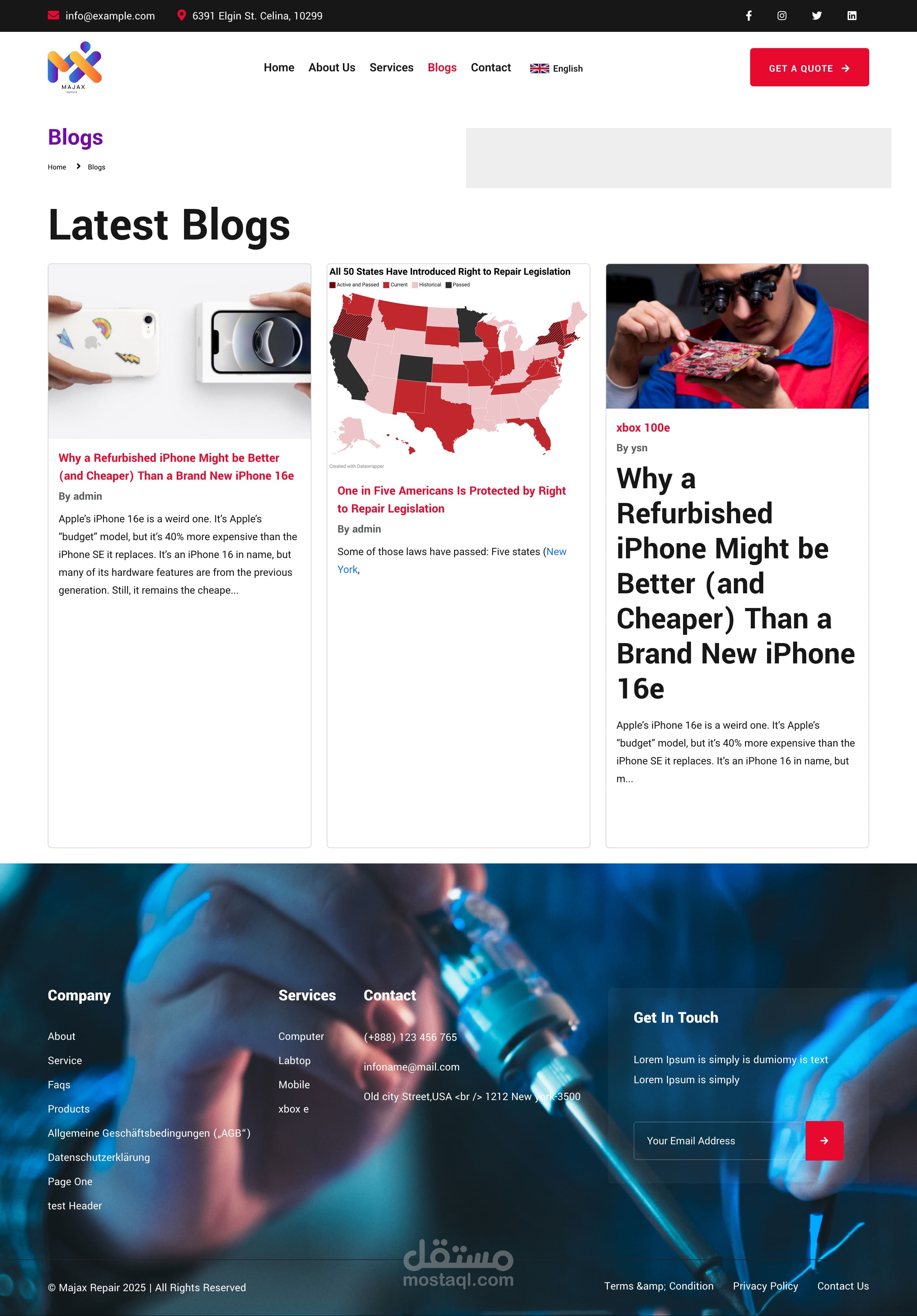 موقع تصليح الهواتف الـذكيه ماجاكس - ( React ) Website