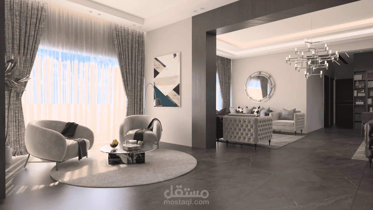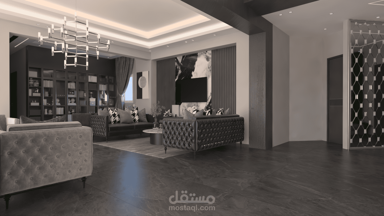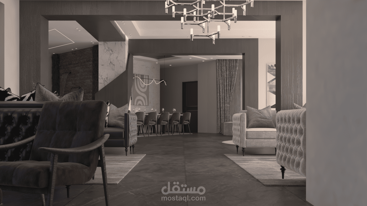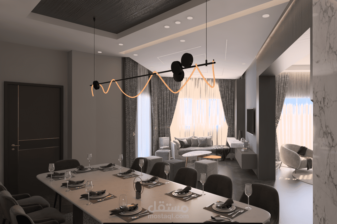 استقبال و صالون وسفره طعام على مسطح 107 متر