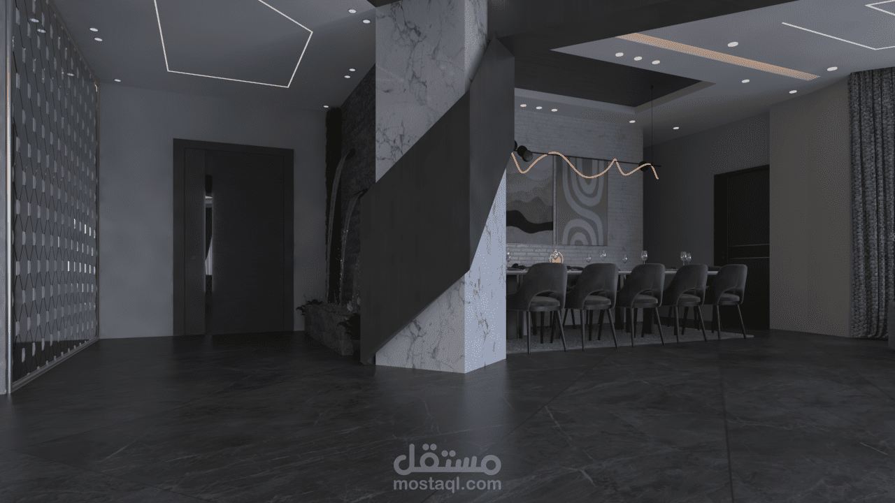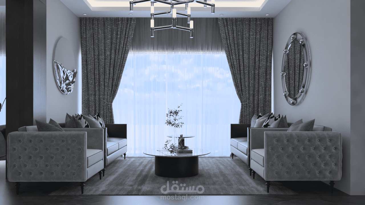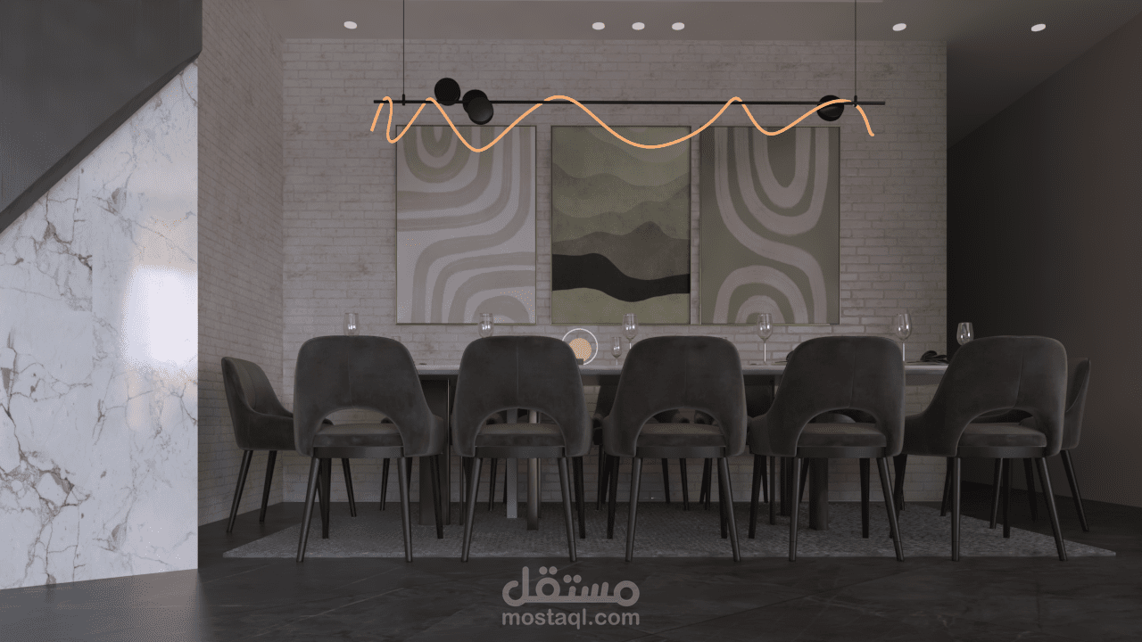 استقبال و صالون وسفره طعام على مسطح 107 متر