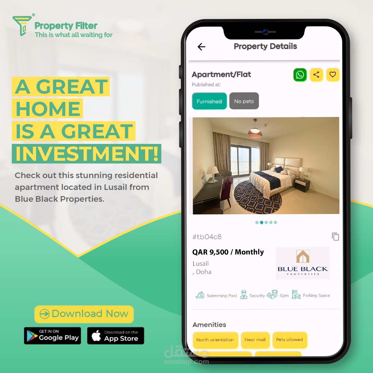 تصميم فيديو انيميشن دعائي قصير لموقع عقاري مع تصميمات سوشيال ميديا