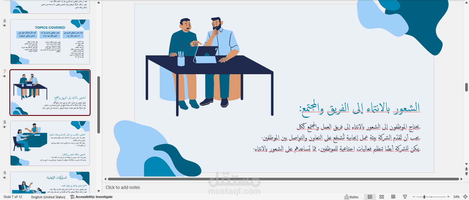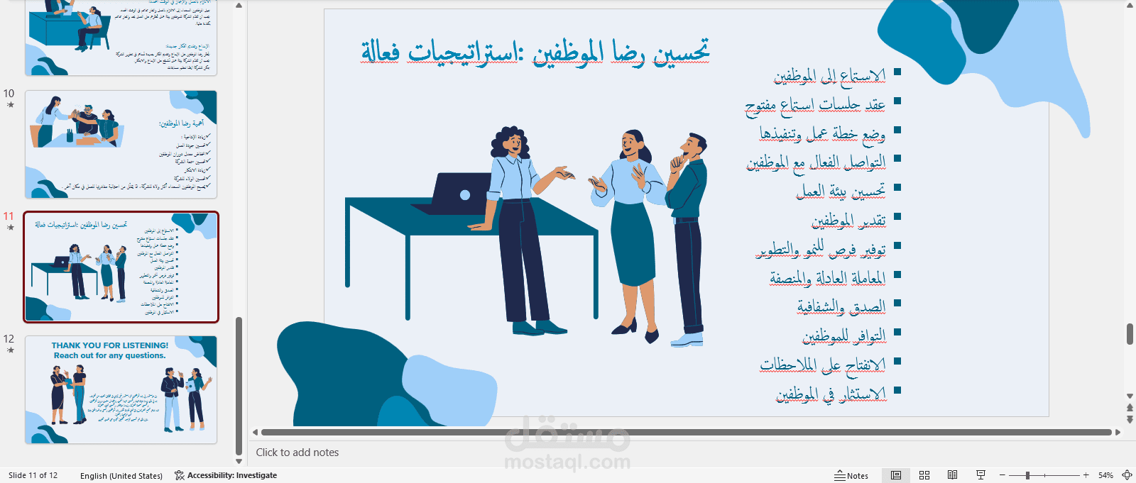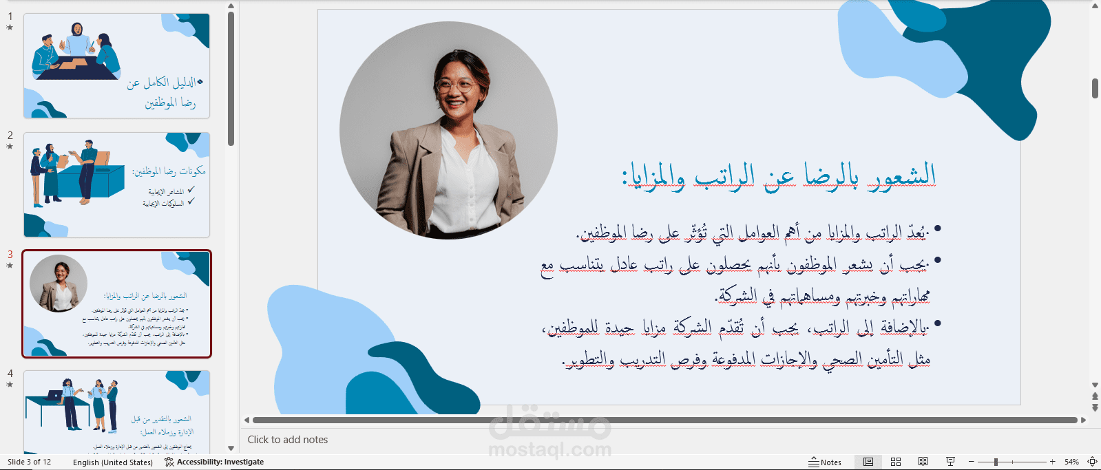 كتابة محتوي و انشاء عرض تقديمي عن: الدليل الكامل عن رضا الموظفين