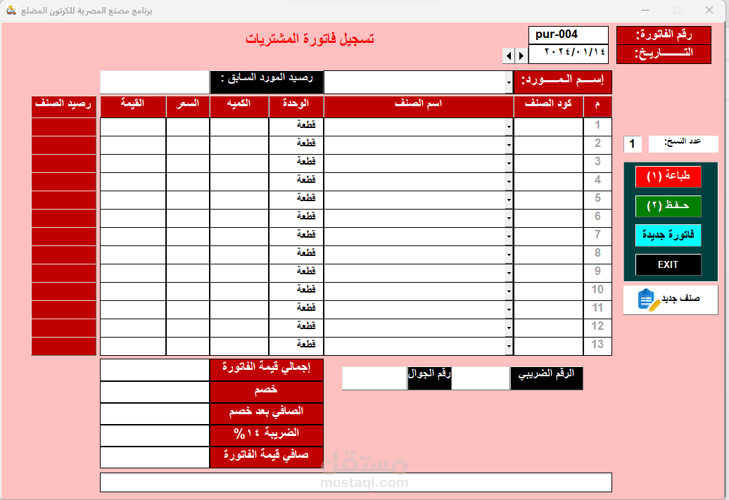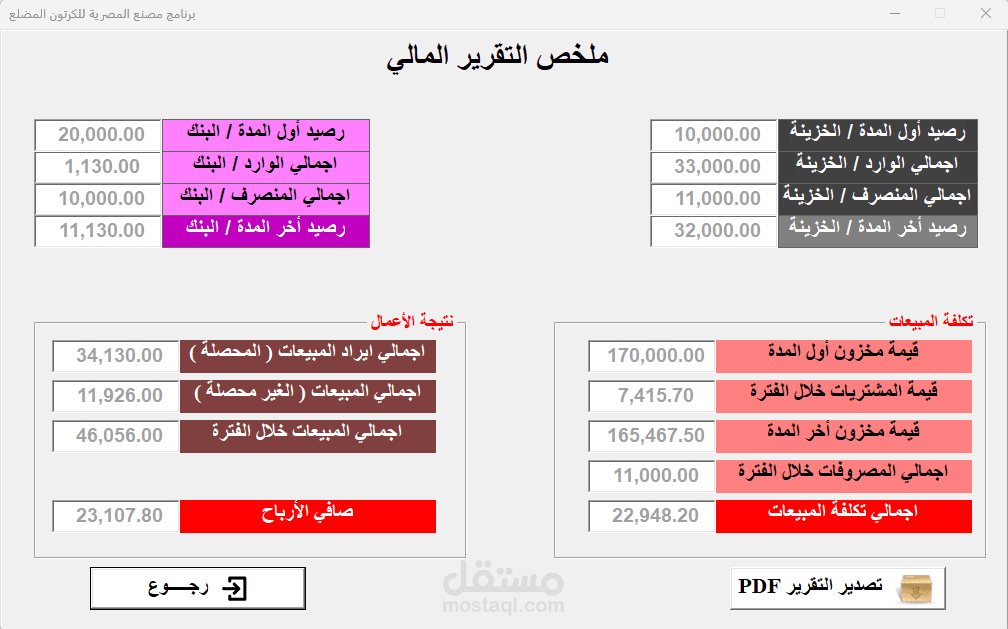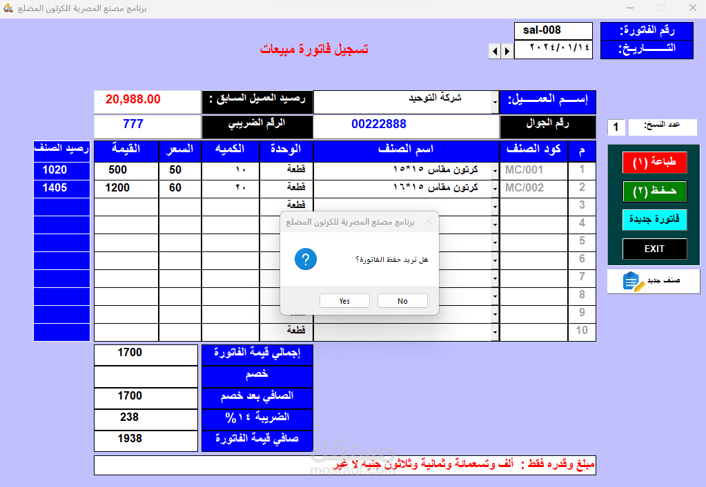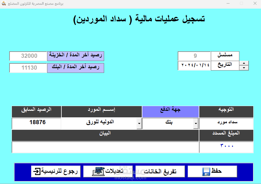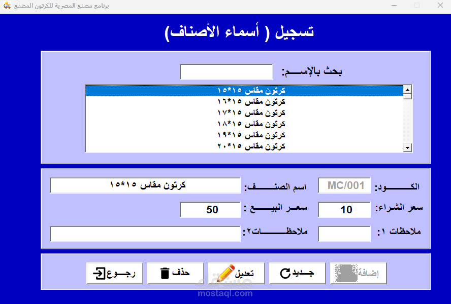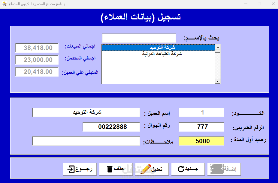**الغرض من البرنامج هو إدارة اعمال مصنع او شركة صغيره ( للكرتون مثلا )، أو أي منتج أخر