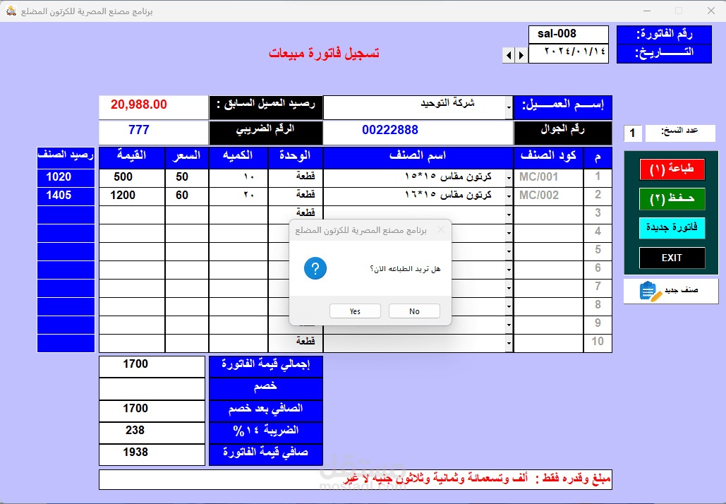 2- يسمح له ايضا بإصدار فواتير المبيعات والمشتريات ،