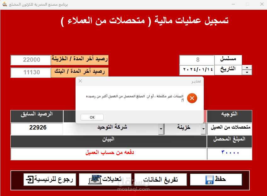 4- يسمح له بعمل تحصيلات من العميل وكذلك سداد للموردين ، مع تسجيل كافة المصروفات المتنوعه ،