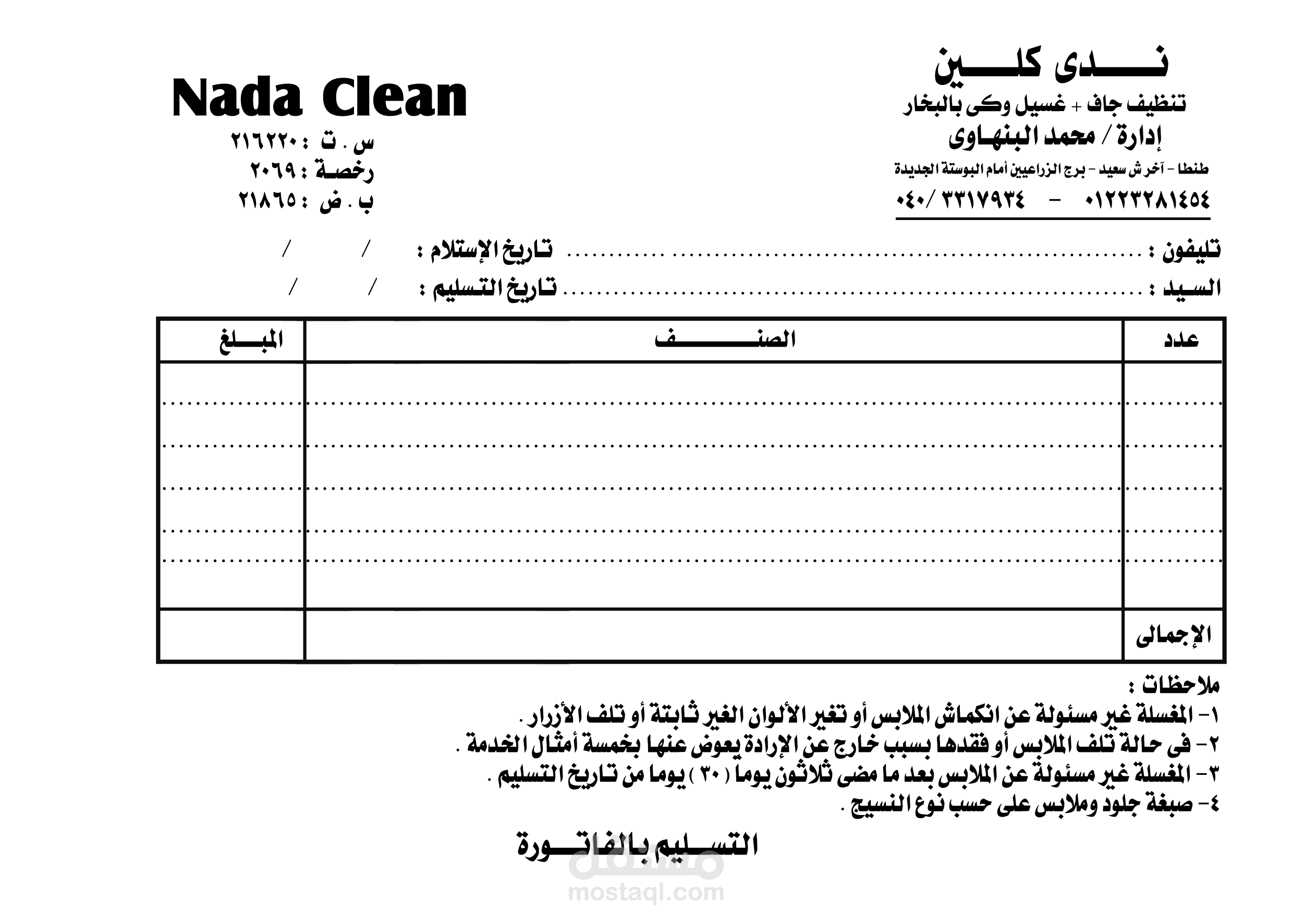- طلب رسم كروكي للفاتورة او الايصال حتي أتمكن من تخيل الشكل المطلوب ، او أخذ من العميل البيانات وعدد الخانات الرأسية والافقية وما يتم كتابته ومقاس الفاتورة او الايصال