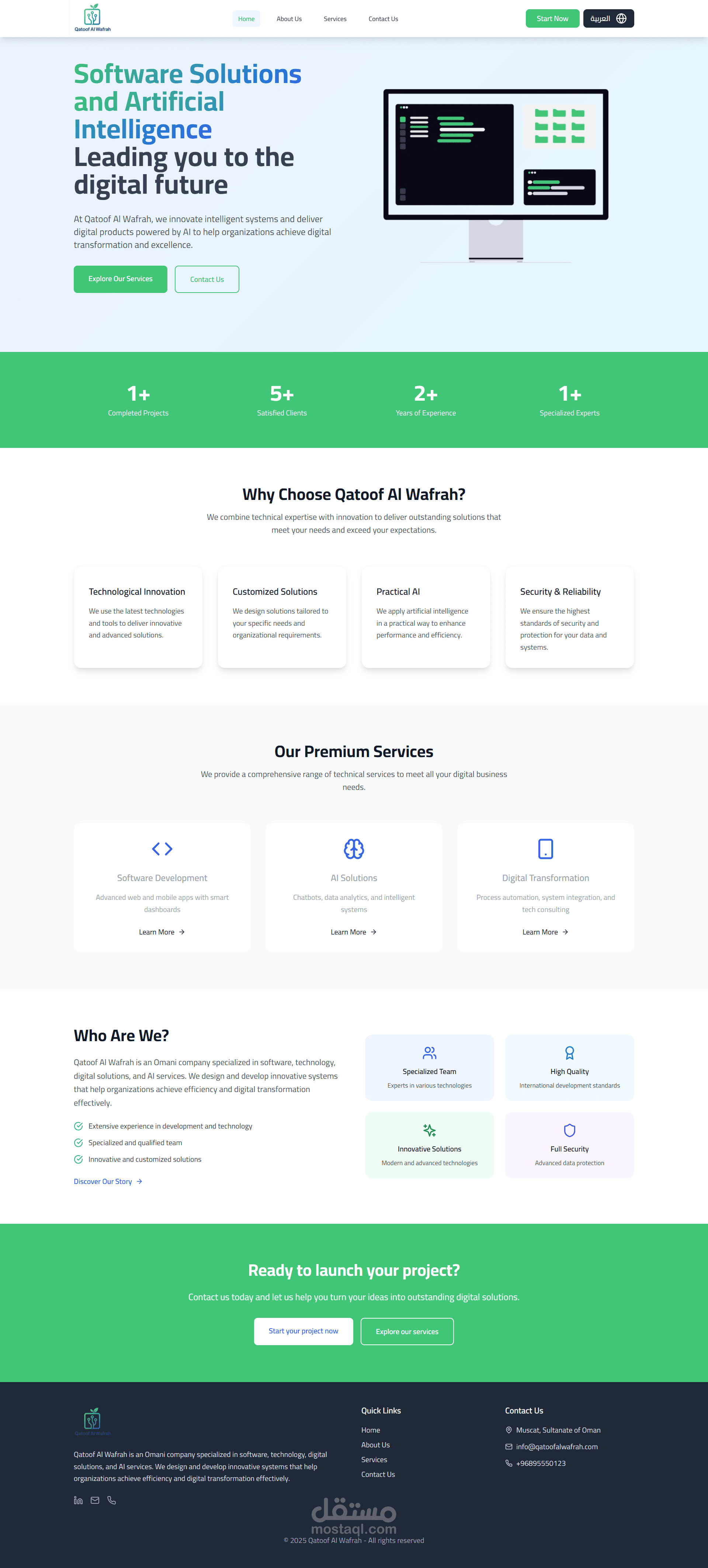 موقع تعريفي لشركة قطوف الوفرة باستخدام اطار العمل React.js يدعم لغتين