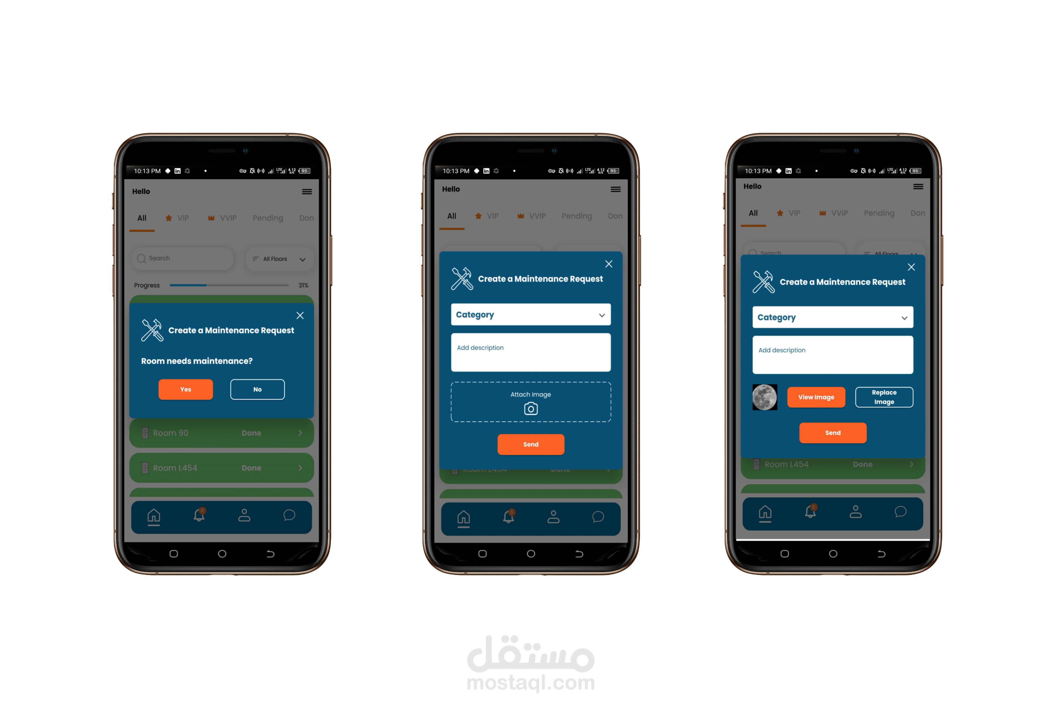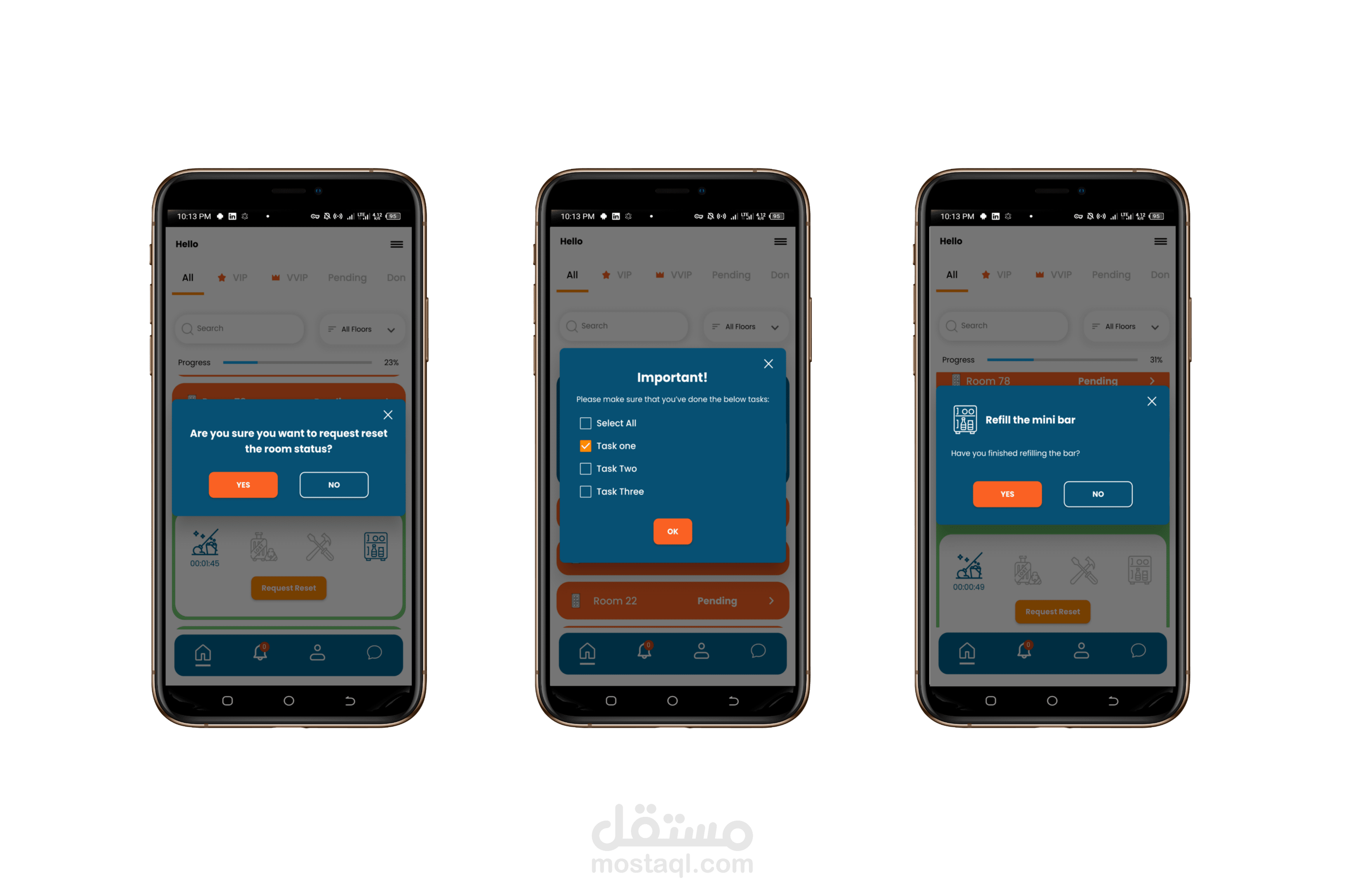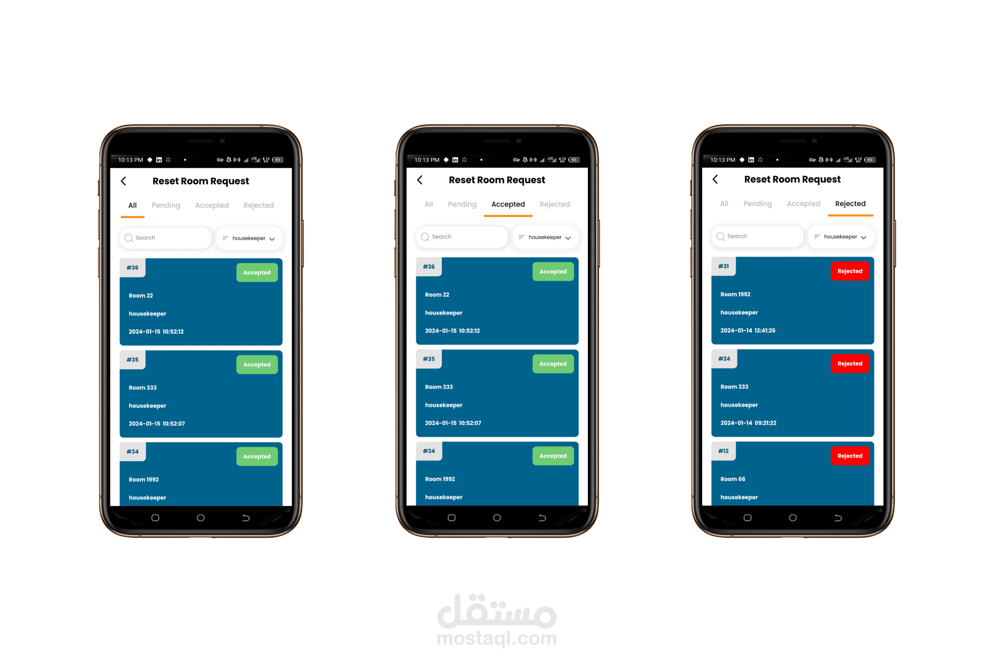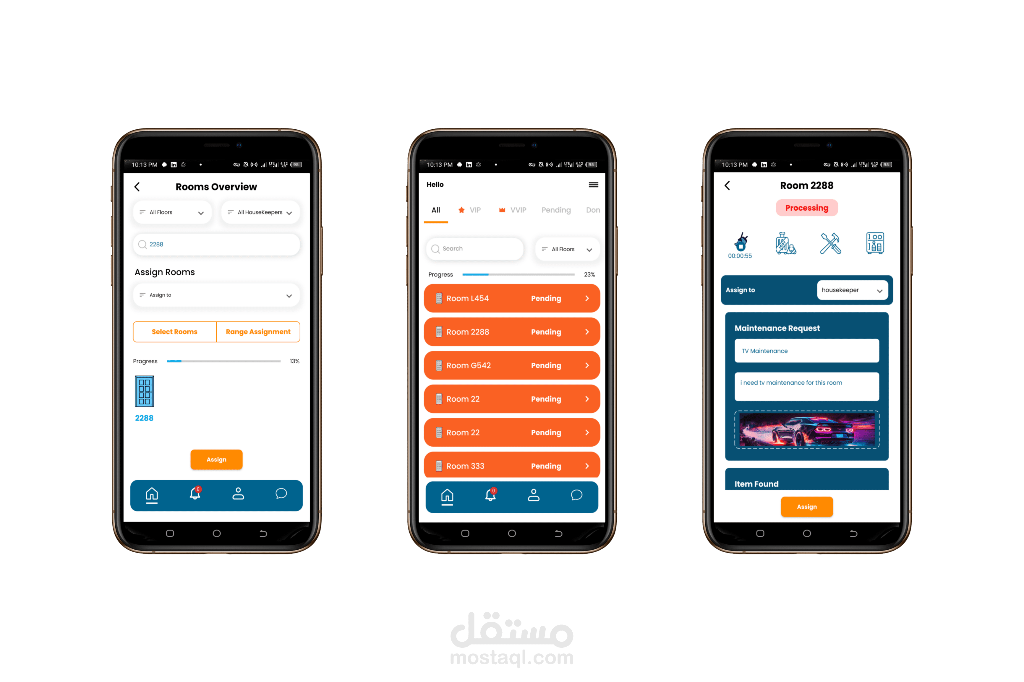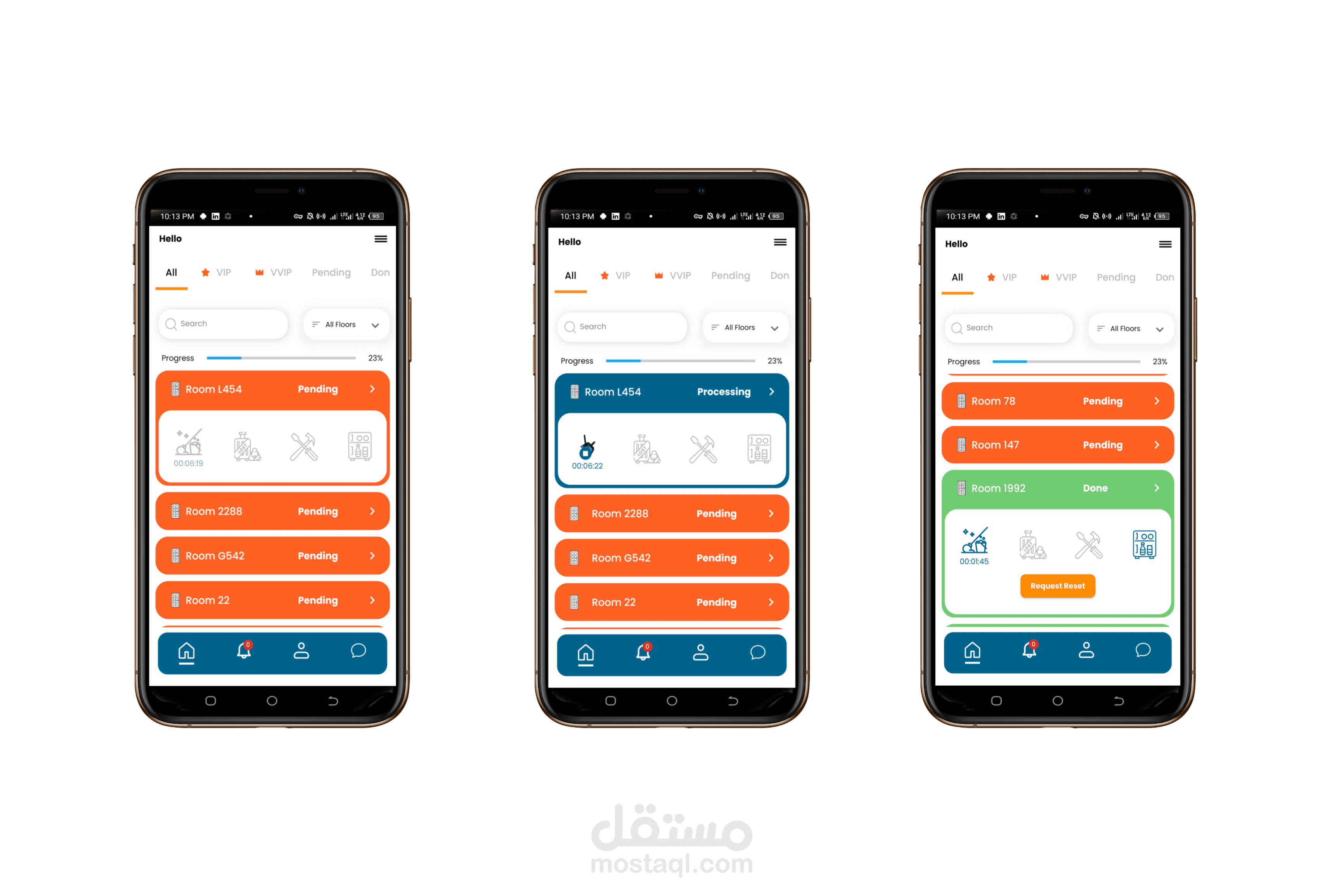 تطبيق موبايل android & ios لإدارة فنادق هذا التطبيق موجه للعاملين في الفندق حيث بامكانهم اضافة وجبات وتصنيفات وغرف ومحادثة بين العاملين واضافة اكواد حسم والعديد من الميزات الاخرى