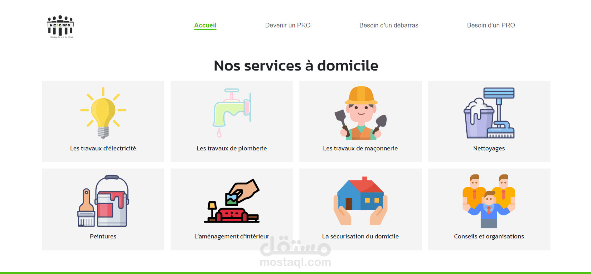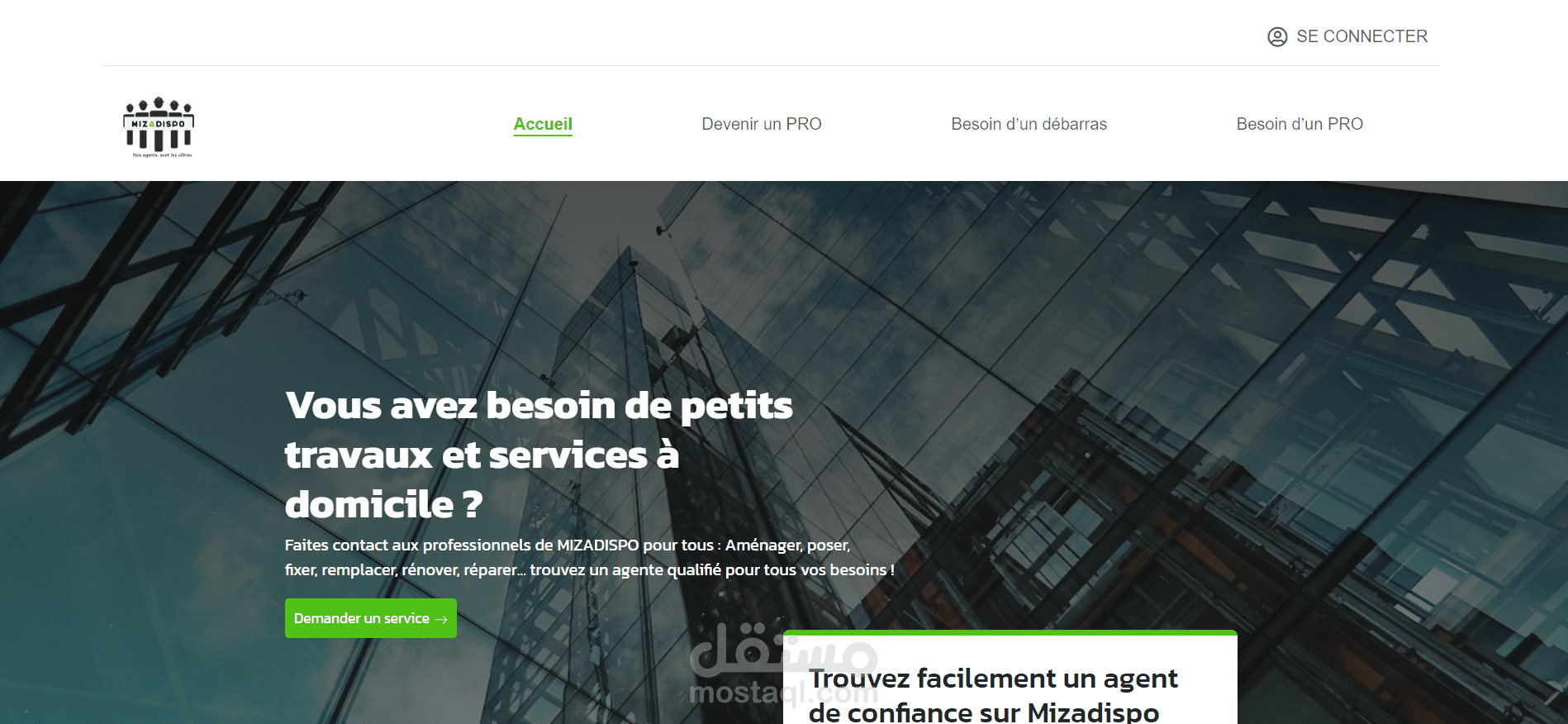 تطوير موقع ويب لشركة متخصصة في عديد المجالات (البناء،التنظيف،نقل محتويات المنازل...)، يتقسم المشروع الى شركة أم و شركات فرعية، تم استخدام اطار عمل لارافيل و مكتبة لايفواير لتطوير المشروع