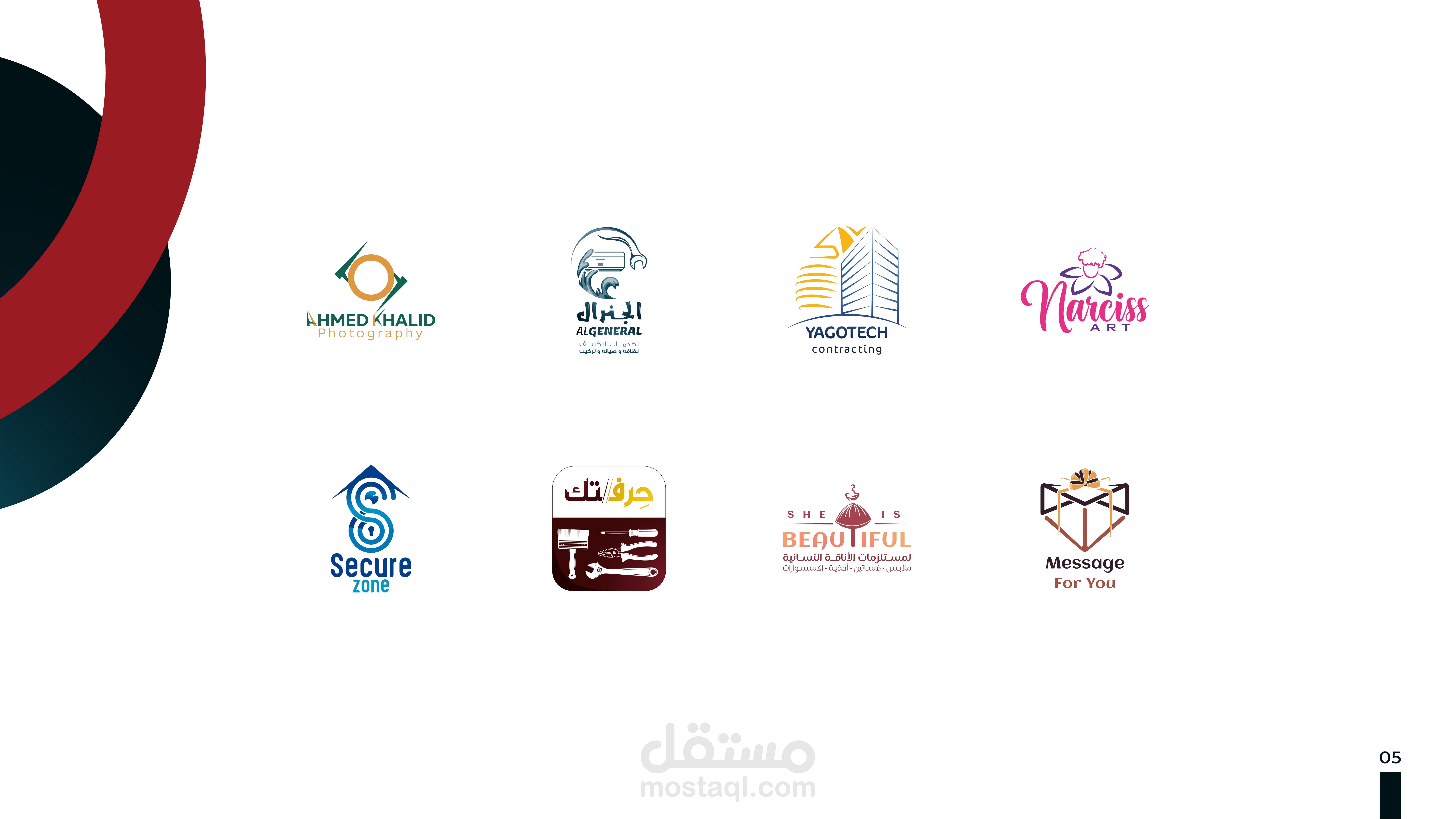 حصيلة أعمالي خلال فترة +3 أعوام من الخبرة في مجال تصميم الجرافيك و بالتحديد في تصاميم الشعارات والهوية البصرية