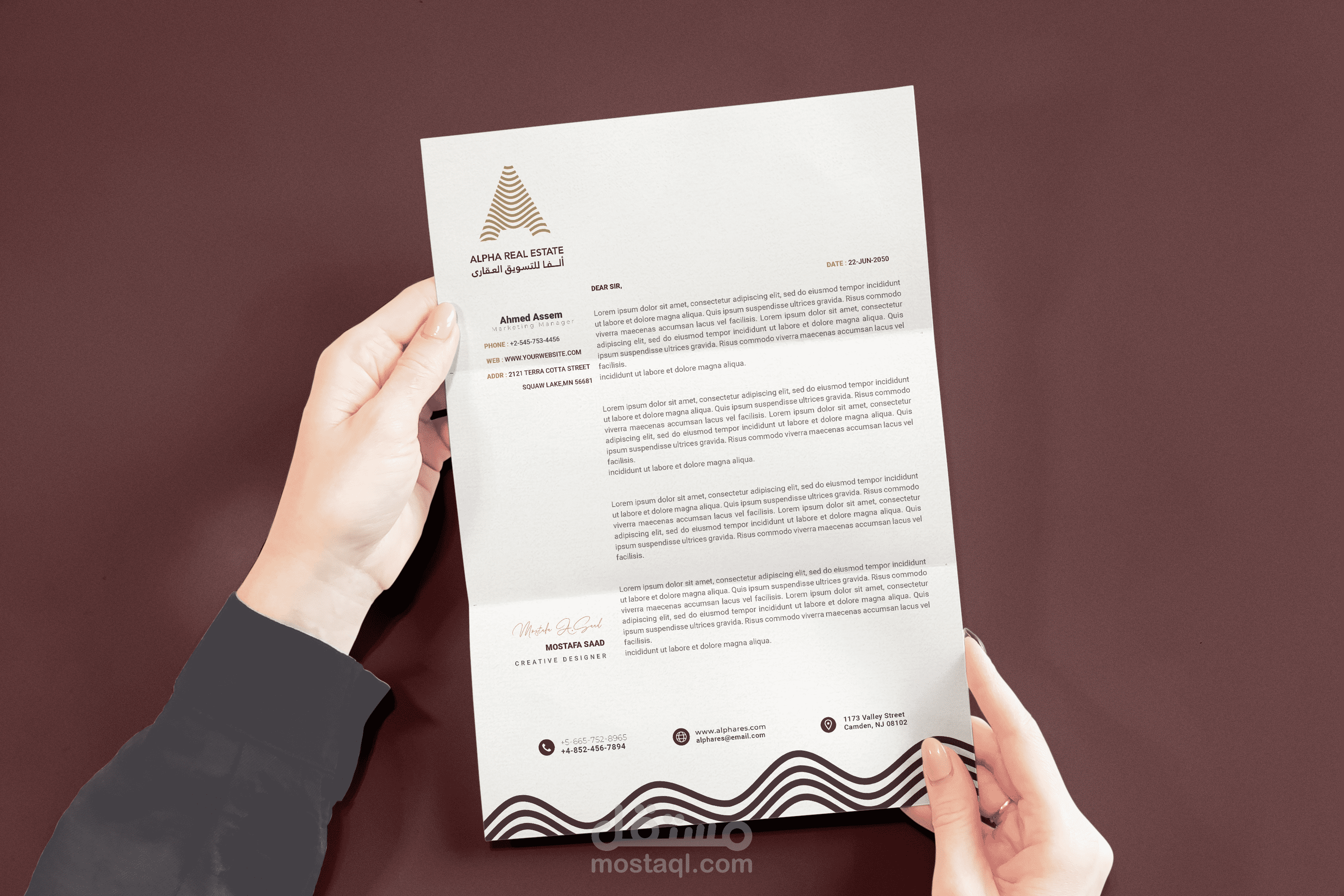 تم تصميم هوية بصرية كاملة لشركة تسمى الفا تعمل فالتسويق العقارى وكان مطلوب لوجو تعبر عن حرف الA وبها مايعبر عن رسومات مموجة للتعبير عن مشاريعهم وابراجهم السكنية