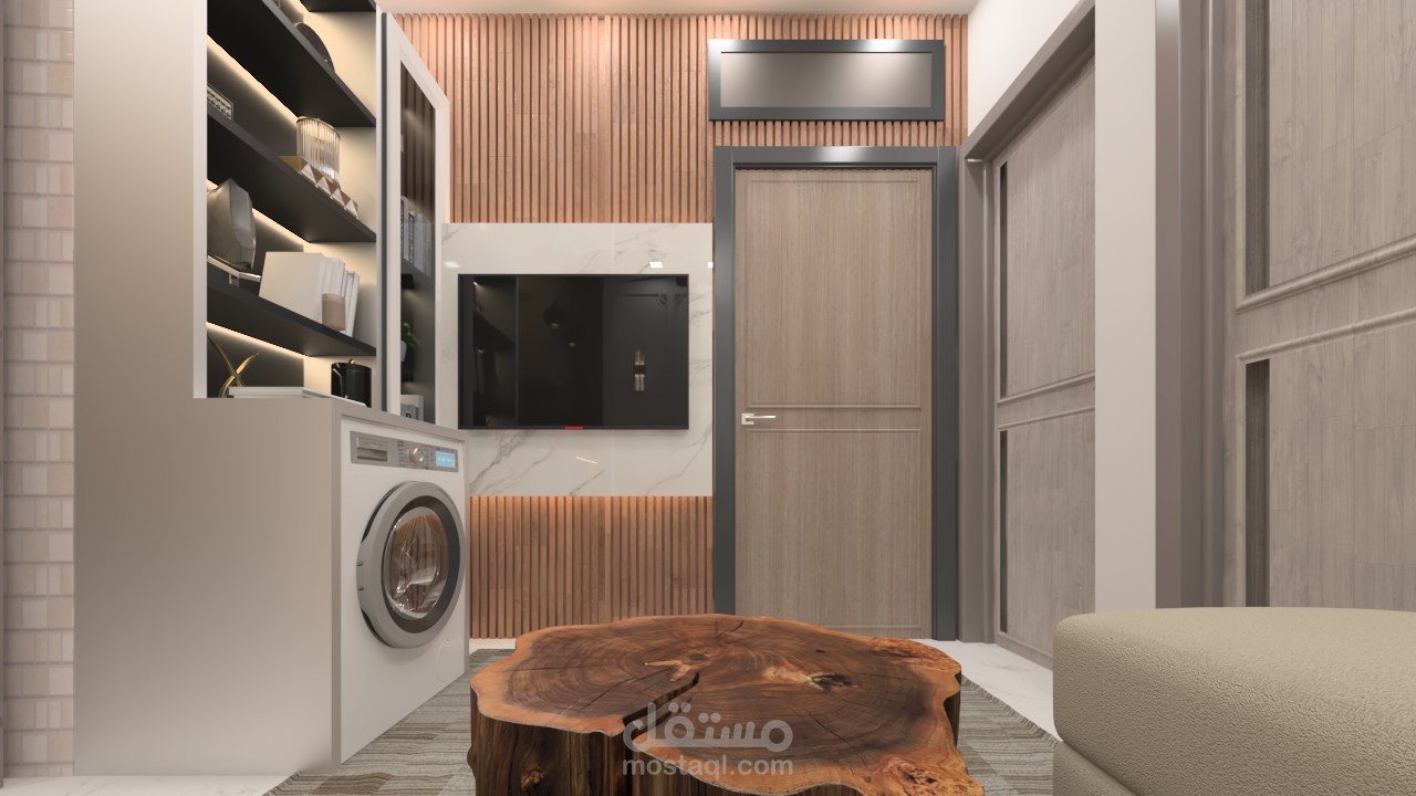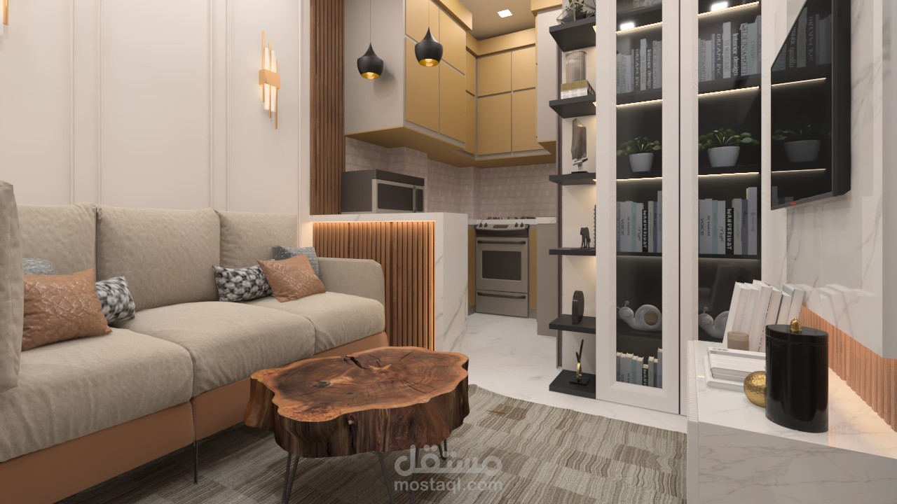 استقبال صغير تم تصميمه للاستفاده من هذه المنطقه الصغيره