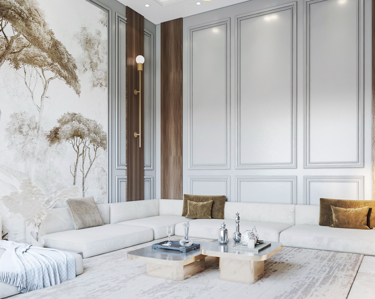 تصميم مجلس رجال راقي بفيلا بالسعودية على طراز نيو كلاسيك مع لمسات مودرن