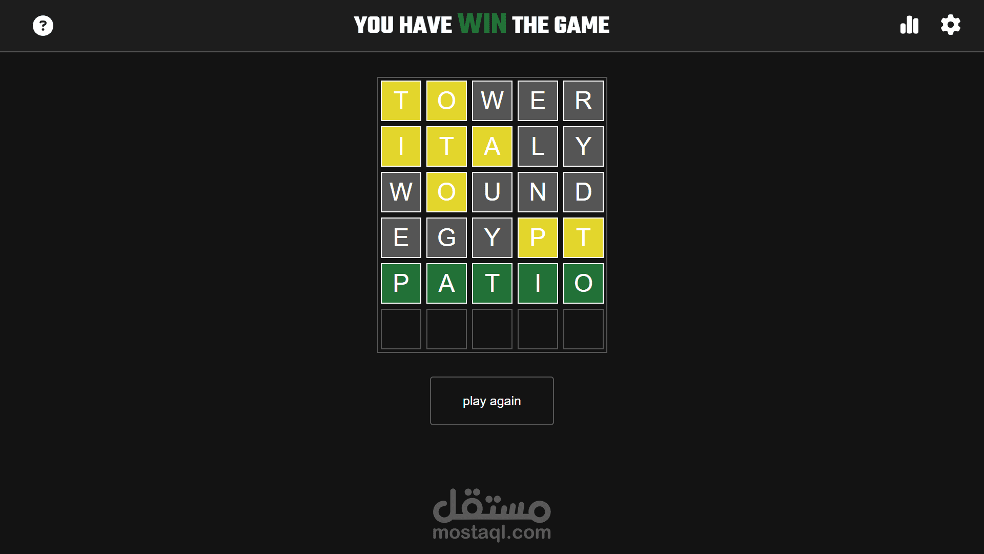 ههذه عبارة عن لعبة مستنسخة من لعبة wrodle game الشهيرة