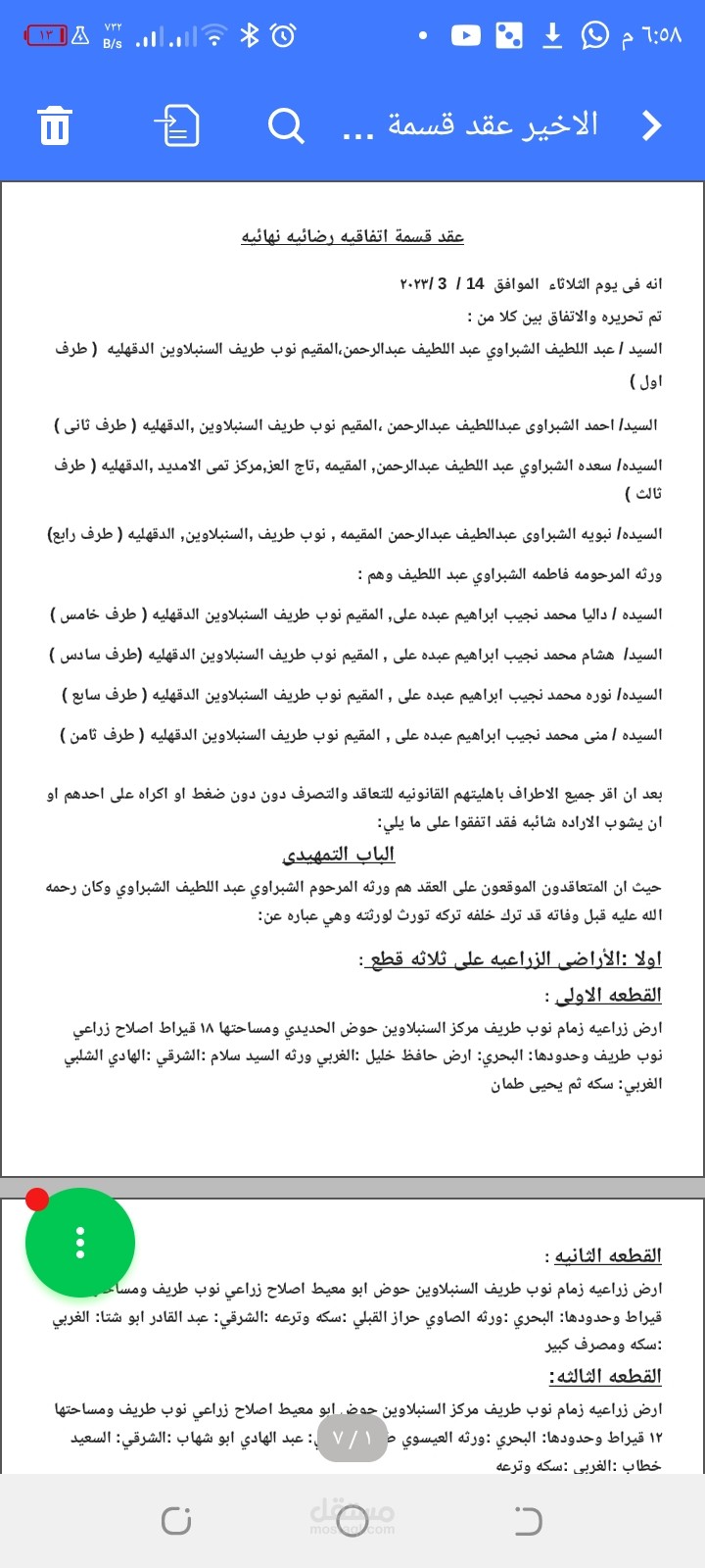 عقد قسمه اتفاقيه رضائيه بين ورثه