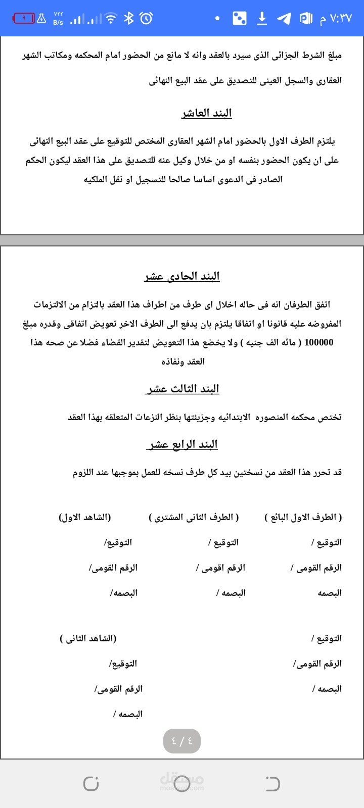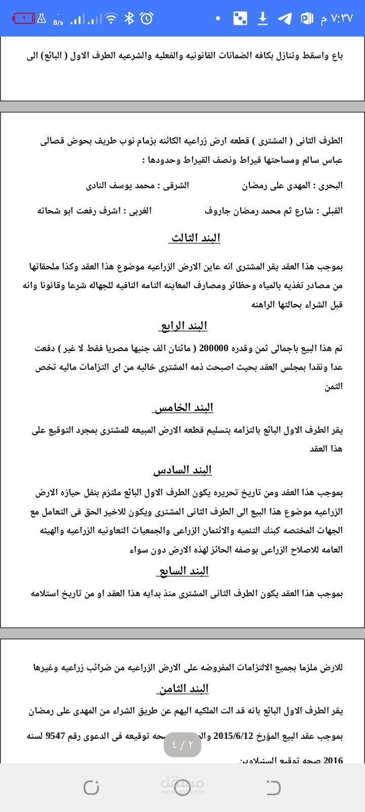 صياغه عقد بيع اطيان زراعيه