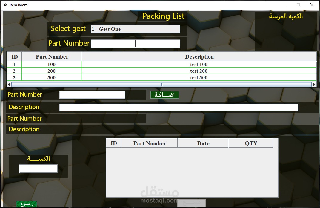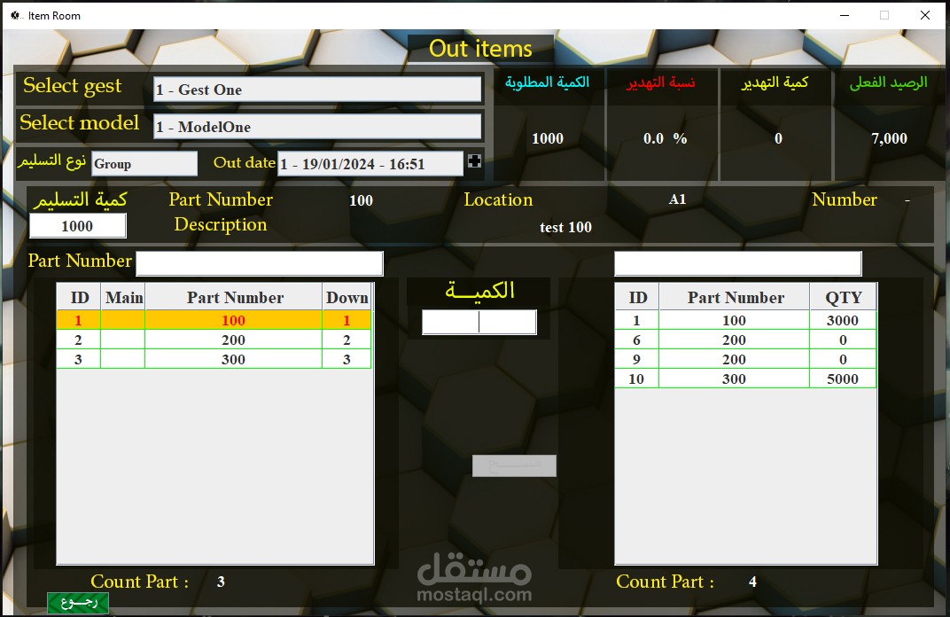 يستقبل البرنامج البيانات من Packing list وبناءا عليها يتم استلام الكميات وبعدها تسليم دفعات المكونات للعمل على خط الانتاج