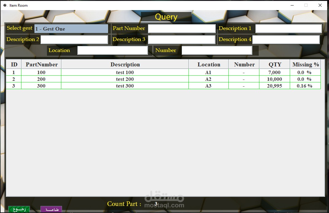 برنامج خاص بمخزن المكونات الالكترونية لقسم SMT أو DIP أو مخزن لخط تجميع موبايلات
