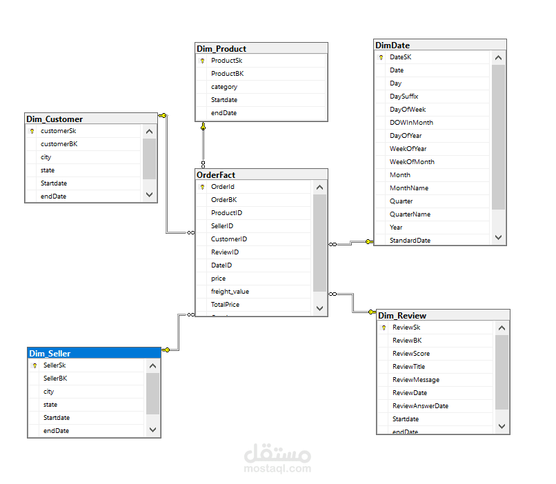Foreign Keys: Customer, Review, Seller, Date, Product