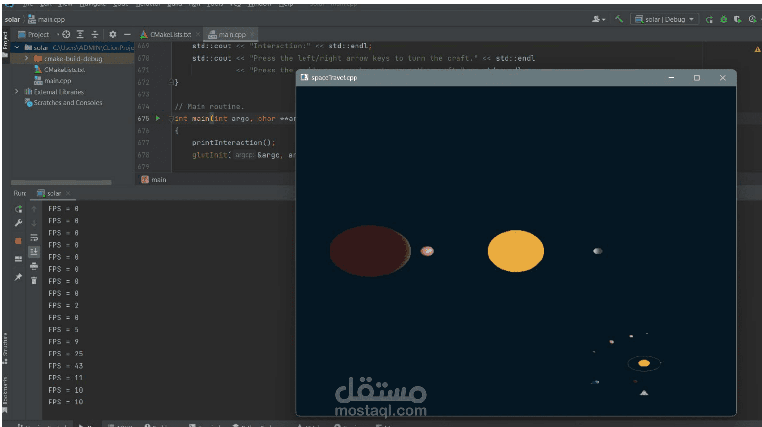 An application that simulates the solar system (the sun , planets and moons) enables user from controlling and moving throw space-craft to explore it using two