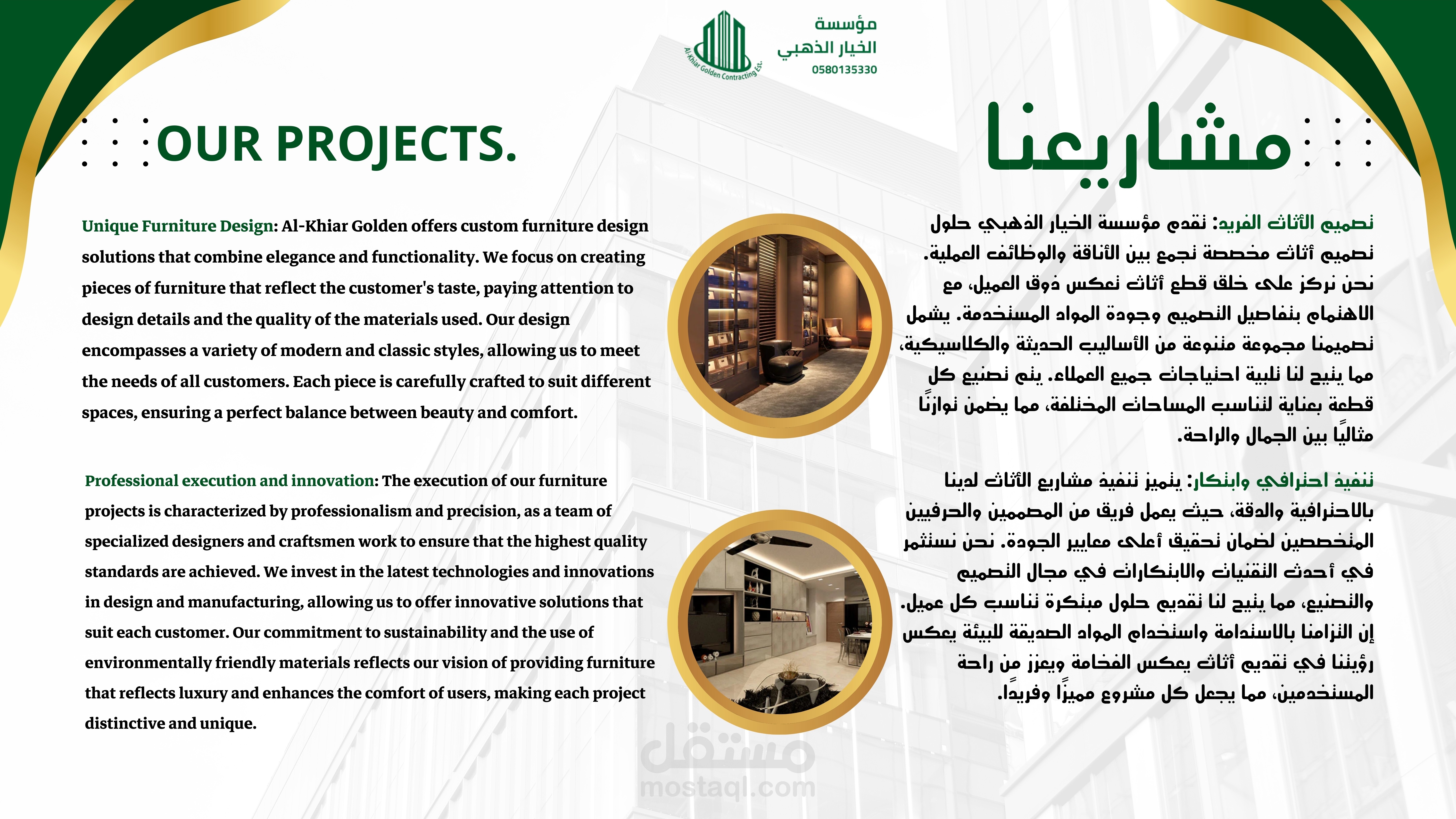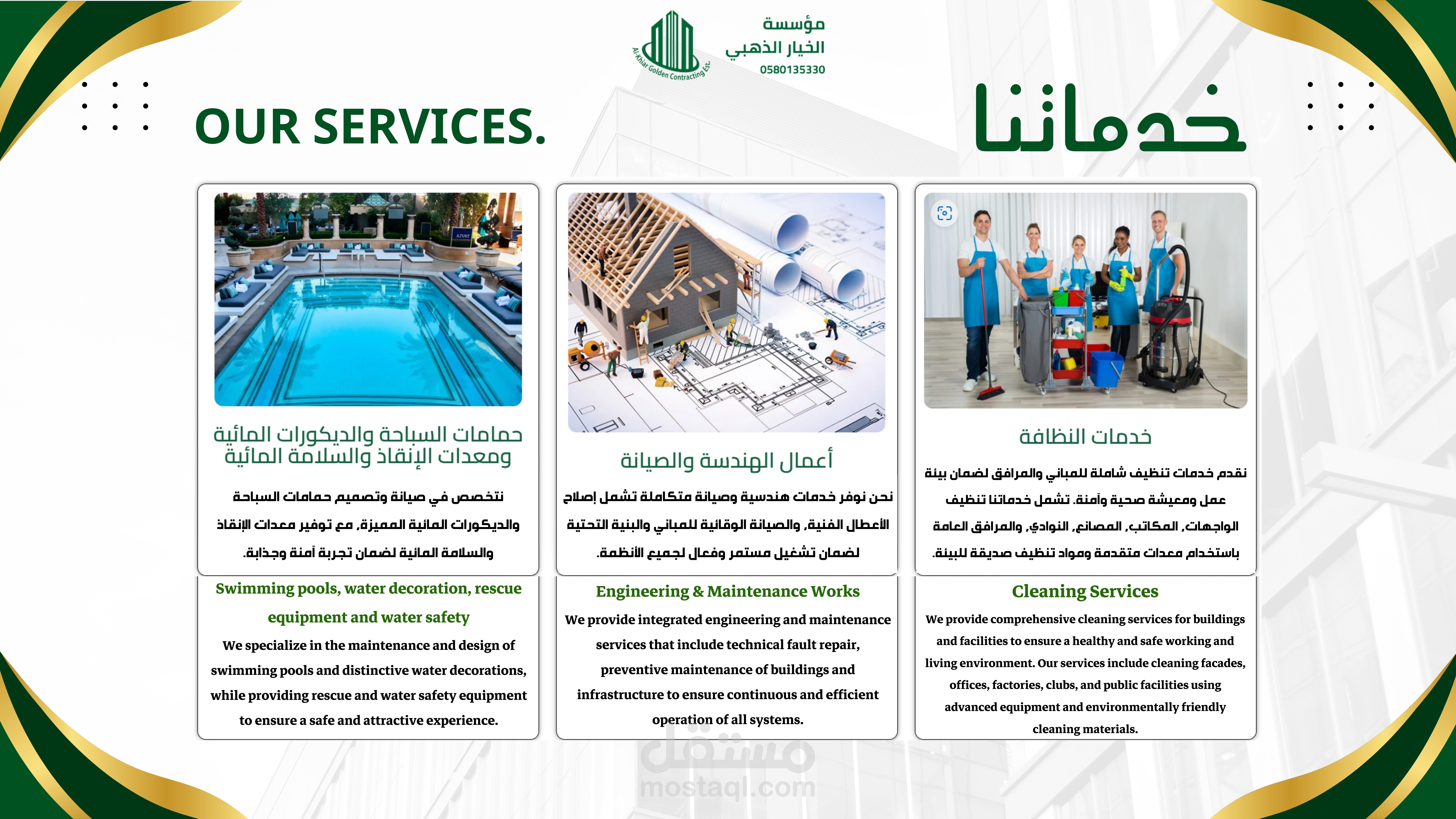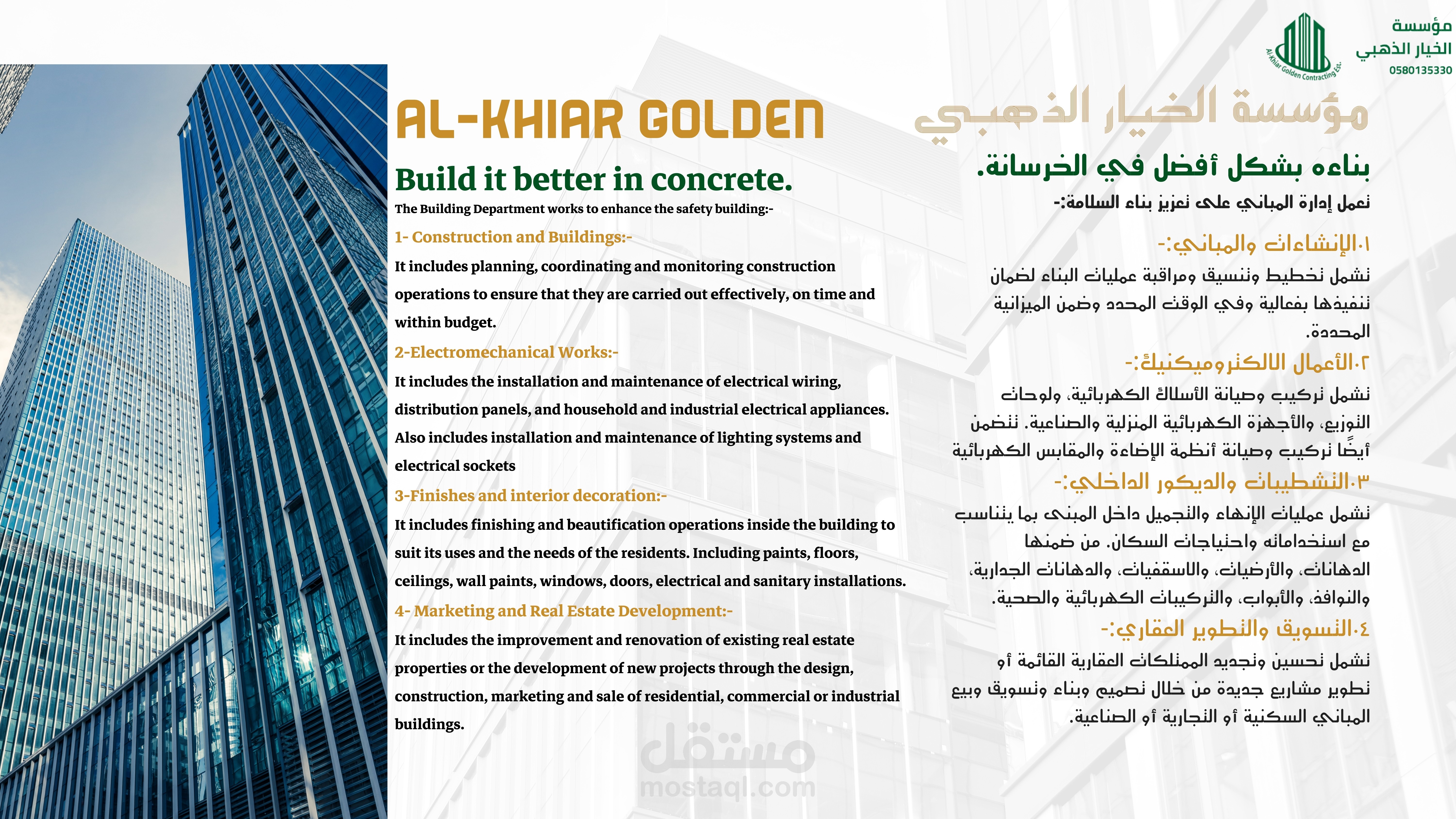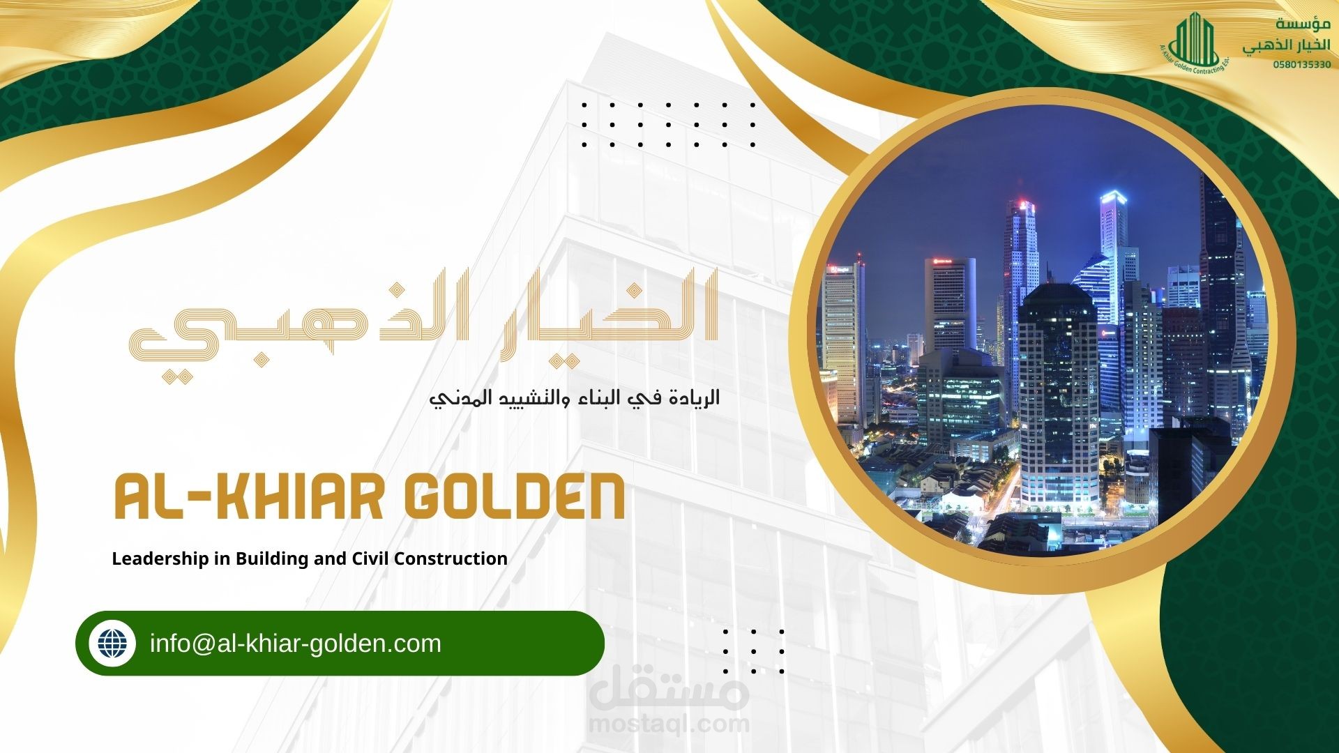 تم عمل تصميم بروفايل احترافي وابداعي لشركة الخيار الذهبي السعودية. تم تقديمه بطريقة تناسب هوية الشركة وتعكس قيمها وأهدافها.