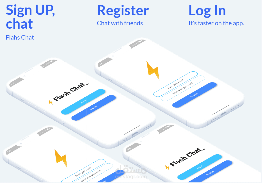 Flash Chat هو تطبيق محادثات سريع ذو واجهة مستخدم حديثة يسمح للمستخدمين بالتسجيل والانضمام الي اصدقاؤهم والاستمتاع بالمحادثات ومطور باستخدام تقنيات عالية الجودة ك Flutter للتطبيق والواجهة الامامية و Google Firebase و Cloud firestore للواجهة الخلفية والعديد من التثنيات القوية الاخري لدعمه ليكون تطبيق محادثة قوي.