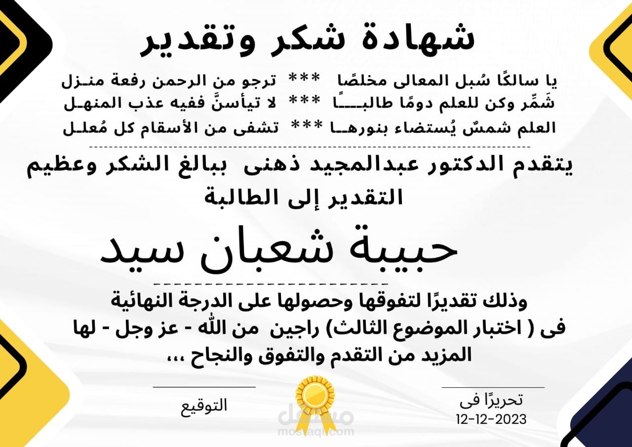 تصميم شهادة تقدير