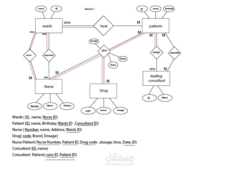 • Each ward may host one or more patients and each patient is hosted by only one ward.