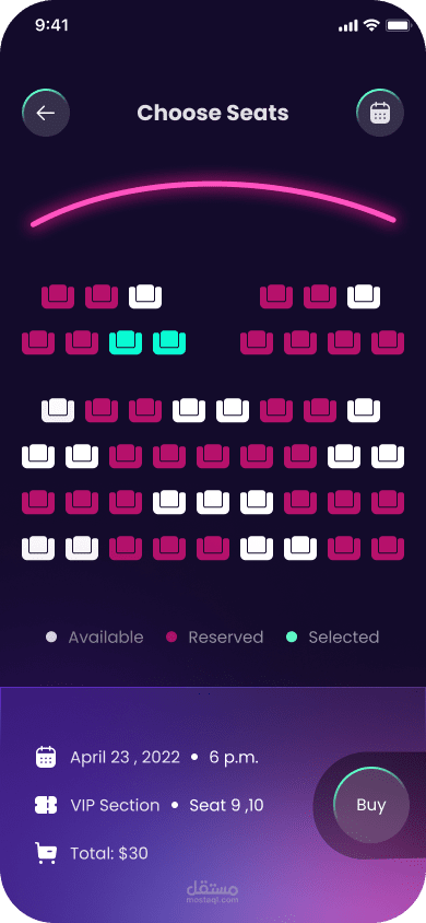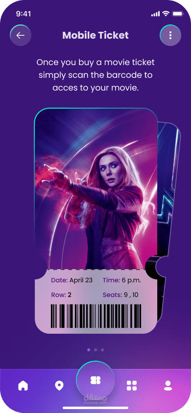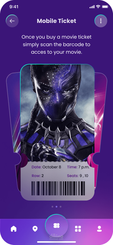 تصميم واجهات تجربة المستخدم لتطبيق قطع تذاكر سينما، مع كتابة المحتوى الخاص فيها، عن طريق تطبيق Figma