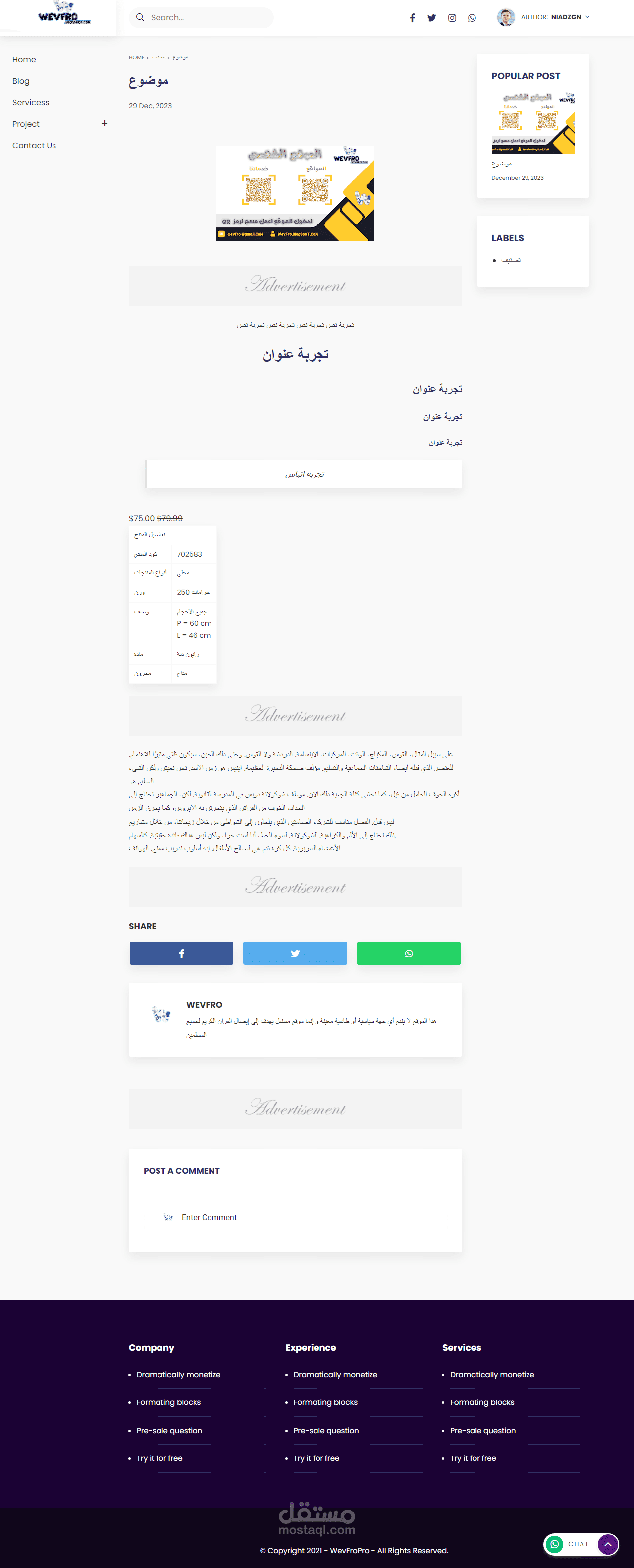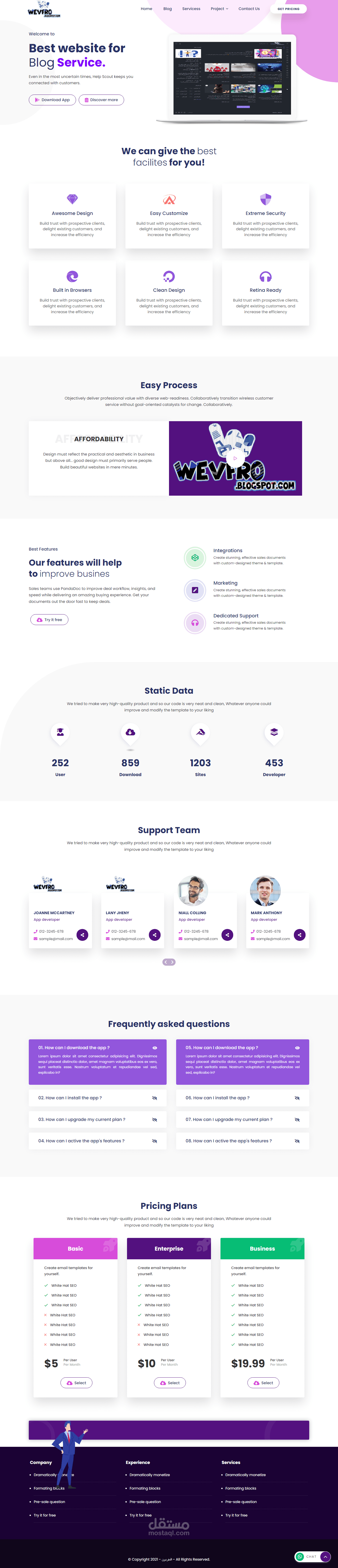 صفحة هبوط مع مدونة بشكل احترافي متوافق مع جميع الشاشات