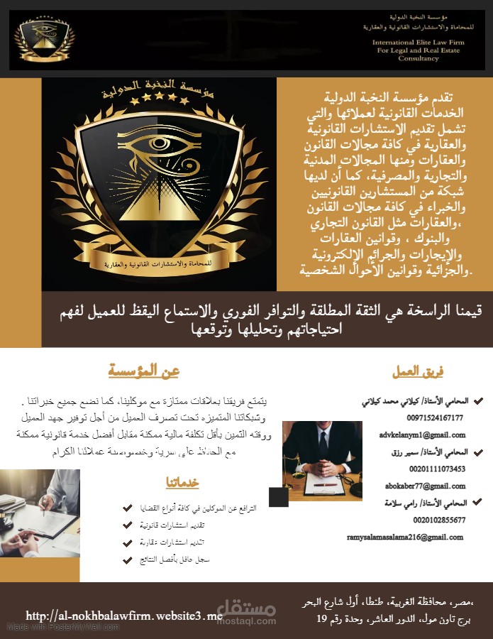 تصميم لوجو وموقع إلكتروني لمكتب محاماة وبيزنس كاردز