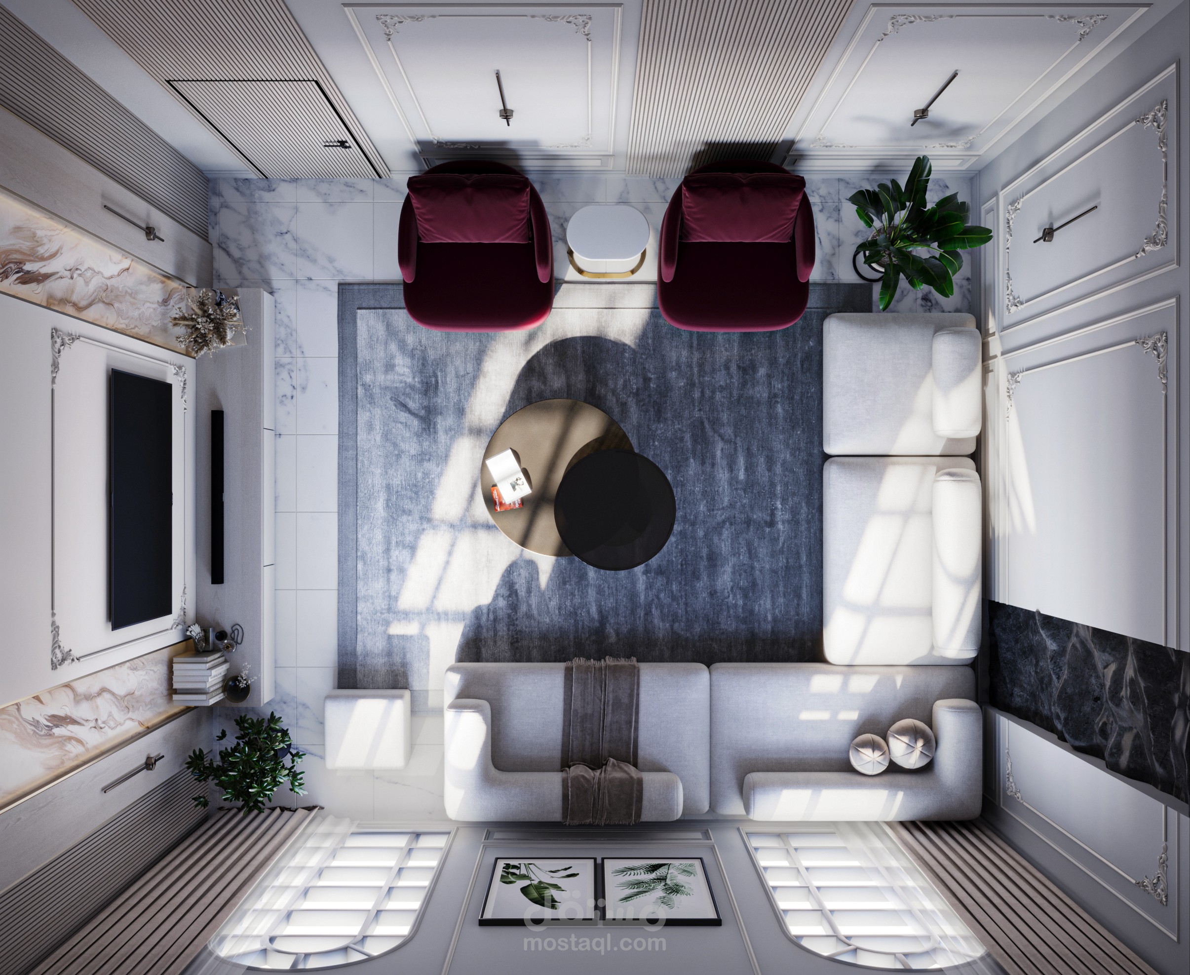 ان استخدام الحجر الاسود مع البانوهات البيضاء أدى لكسر الرتابة الغرفة خلق جو من التباين فاض جمالية و نوع من الراحة لنفسية المستخدم