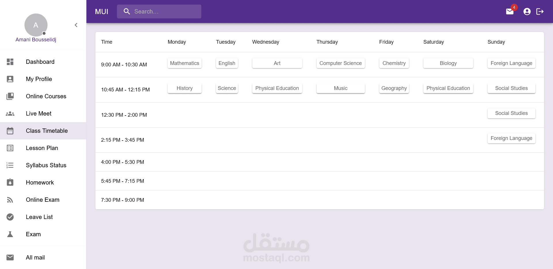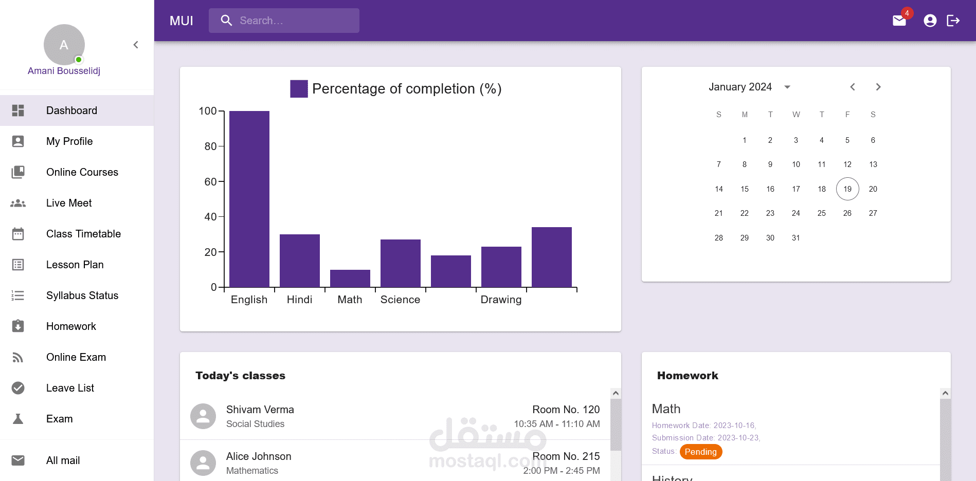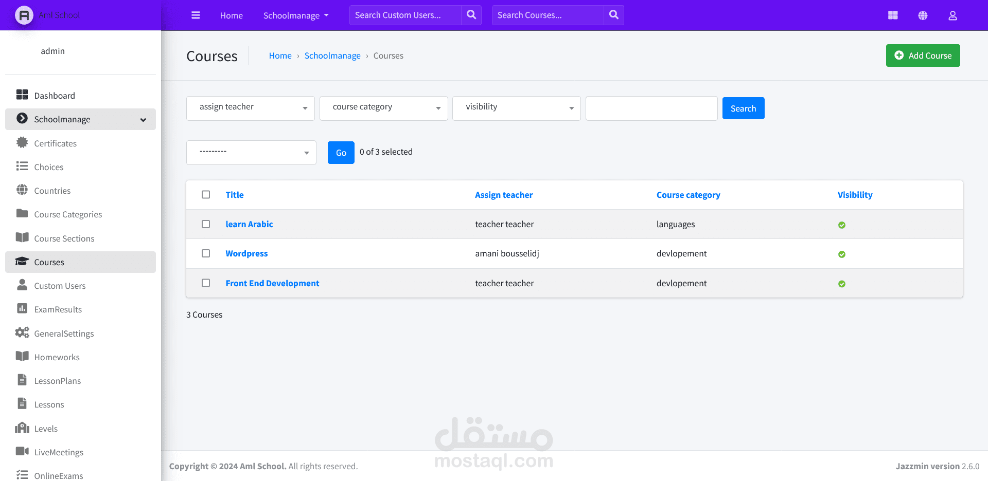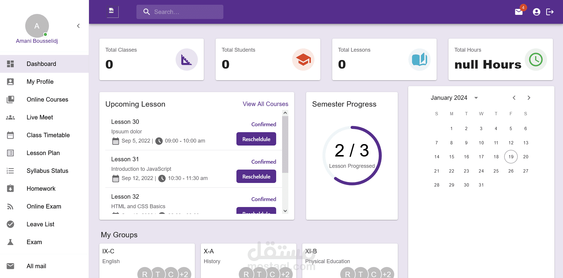نظام متقدم لإدارة المدرسة والدورات الدراسية صُمم باستخدام Django REST API وReact.js وBootstrap. يتميز بلوحات تحكم مخصصة للمسؤولين والمعلمين والطلاب والأهل، ويوفر ميزات مثل إدارة الدورات وتتبع الحضور والاتصال الفوري وتحليل الأداء وأمان قوي. يعتبر هذا النظام أولوية التعاون وتبسيط المهام الإدارية وتعزيز التواصل الشفاف بين جميع الفاعلين. بفضل قابلية التوسع والاستجابة وسهولة الاستخدام، يعد الموقع حلاً مثاليًا للمدارس الحديثة التي تسعى لتحسين العمليات التعليمية.