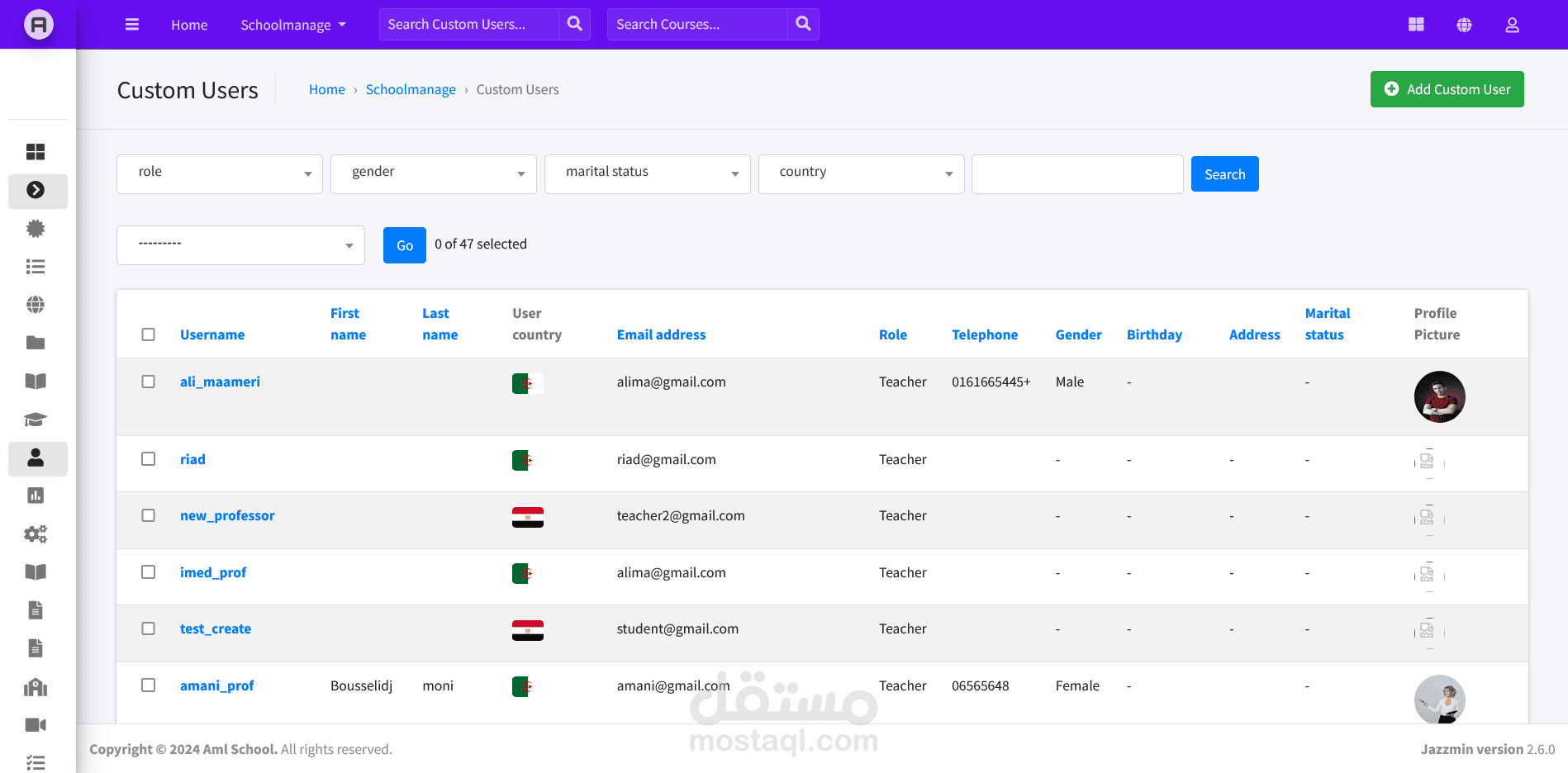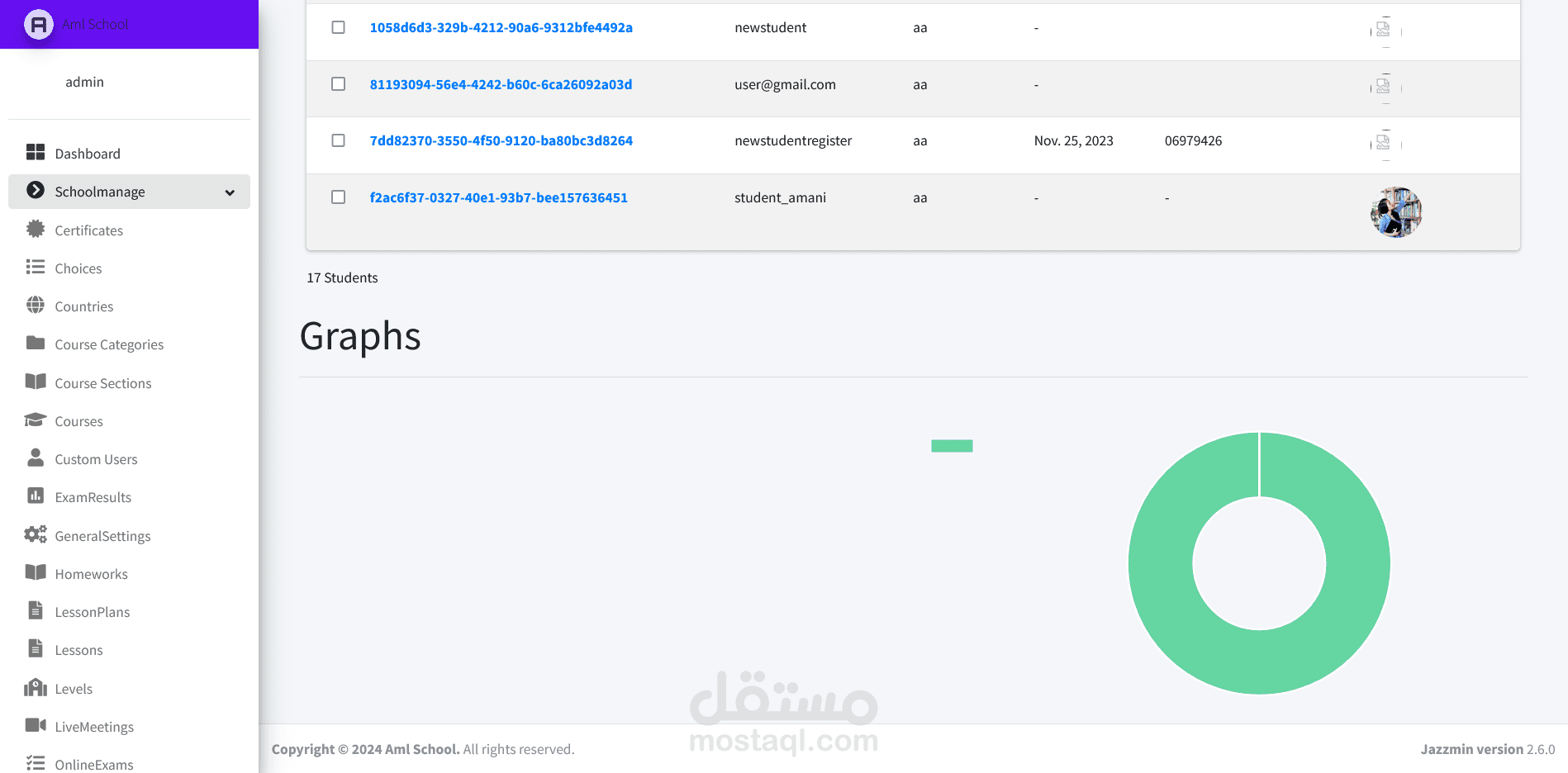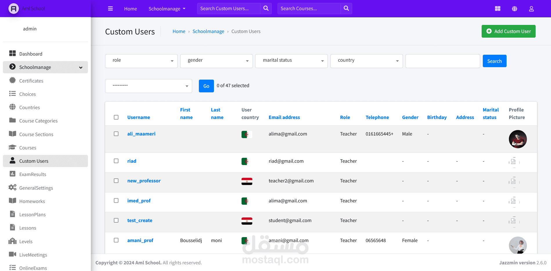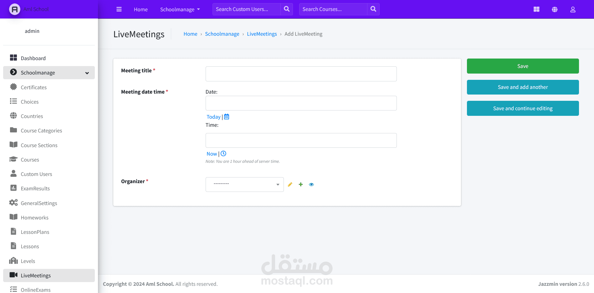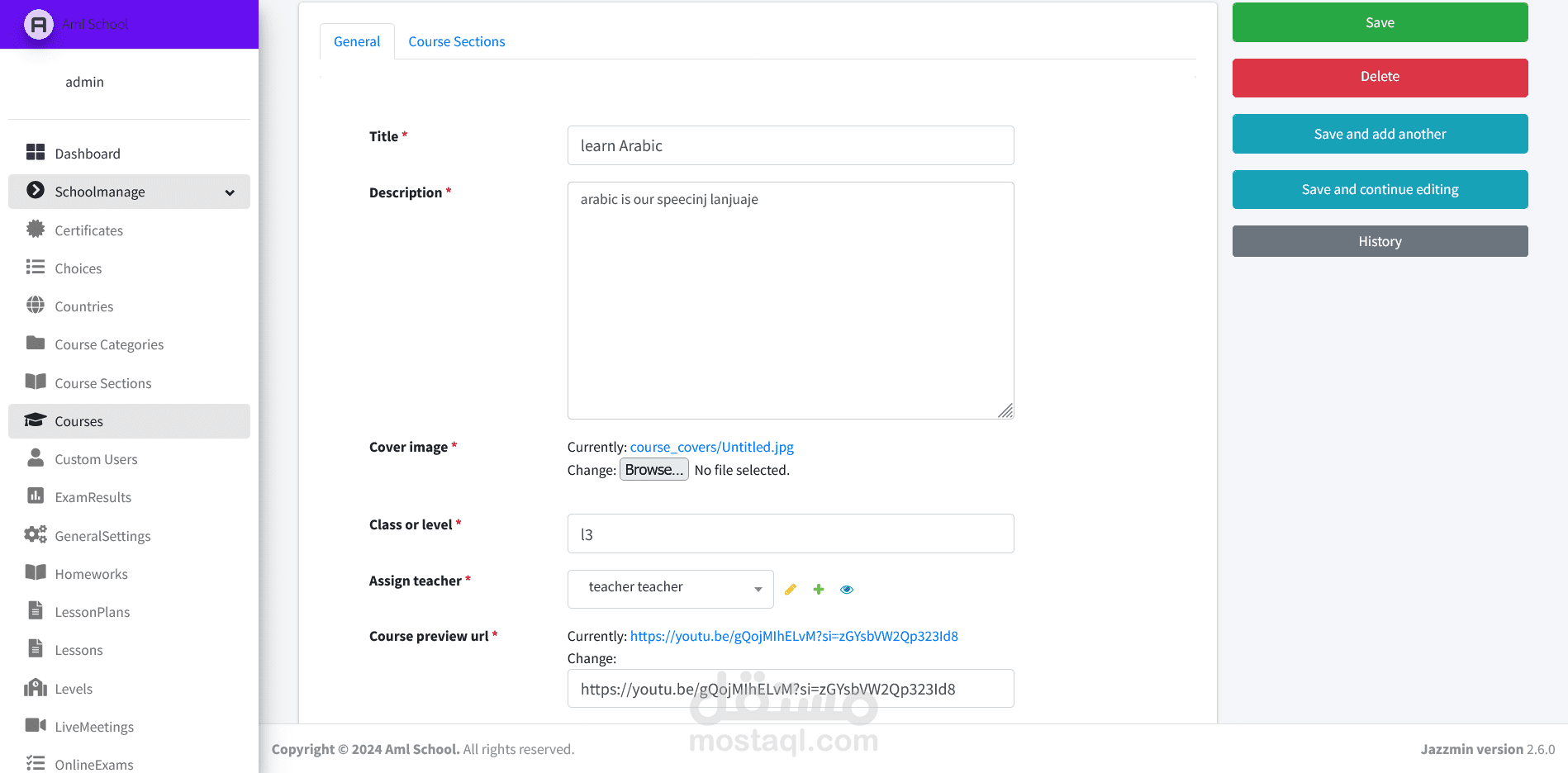 نظام متقدم لإدارة المدرسة والدورات الدراسية صُمم باستخدام Django REST API وReact.js وBootstrap. يتميز بلوحات تحكم مخصصة للمسؤولين والمعلمين والطلاب والأهل، ويوفر ميزات مثل إدارة الدورات وتتبع الحضور والاتصال الفوري وتحليل الأداء وأمان قوي. يعتبر هذا النظام أولوية التعاون وتبسيط المهام الإدارية وتعزيز التواصل الشفاف بين جميع الفاعلين. بفضل قابلية التوسع والاستجابة وسهولة الاستخدام، يعد الموقع حلاً مثاليًا للمدارس الحديثة التي تسعى لتحسين العمليات التعليمية.