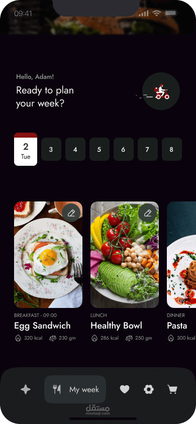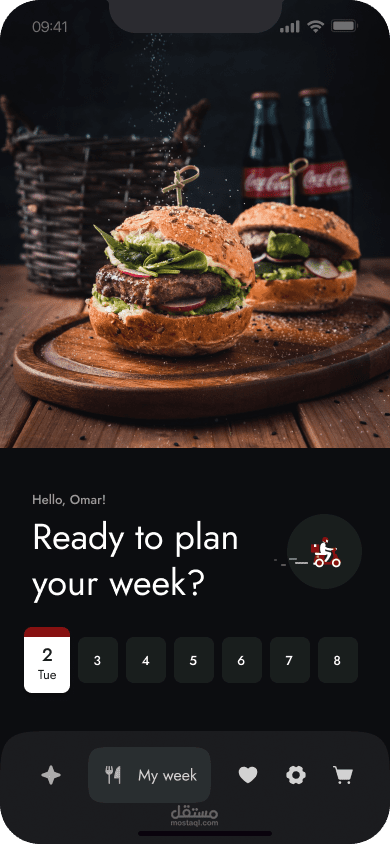 تصميم واجهات تجربة المستخدم لتطبيق طلب أكل مع اللوغو الخاص به، بالاضافة الى كتابة المحتوى الخاص فيها، عن طريق تطبيق Figma