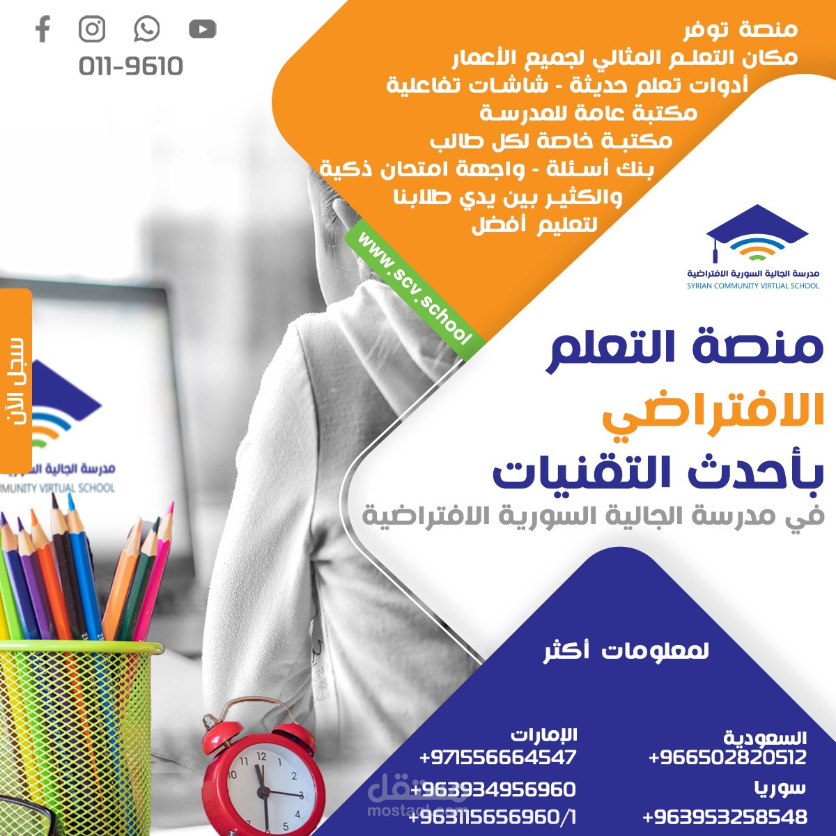 تصميم وتطوير هوية بصرية لمدرسة الجالية السورية الافتراضية وهي مدرسة سورية تقدم خدمة التعليم الافتراضي للطلاب حول العالم