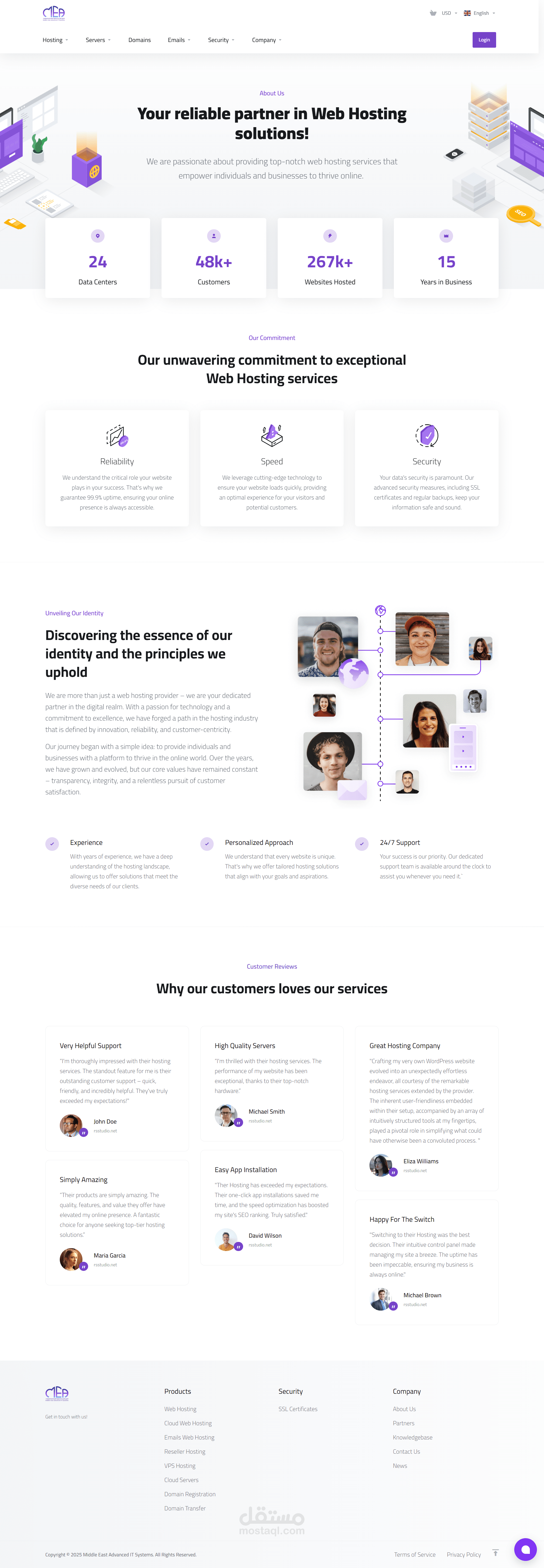 يشمل الموقع خدمات استضافة متعددة، تسجيل نطاقات، وبُنية سهلة الاستخدام، مع واجهة جذابة وسرعة تحميل عالية.