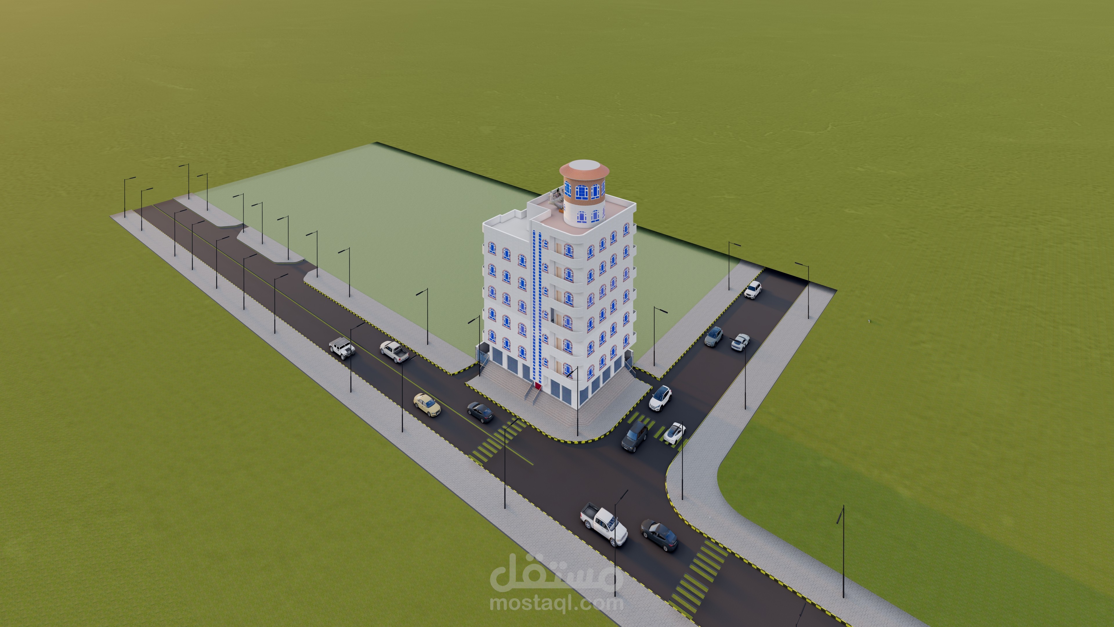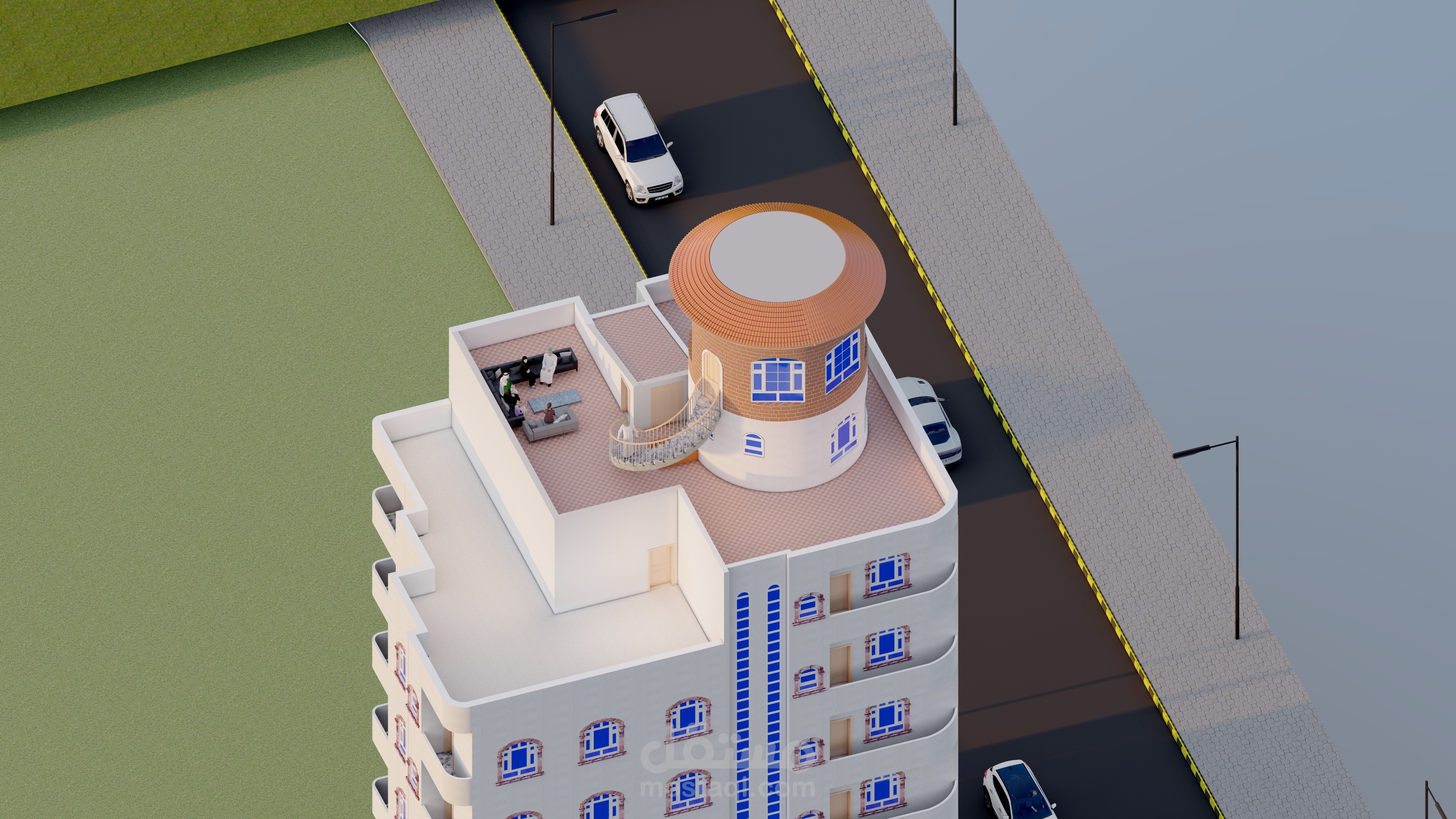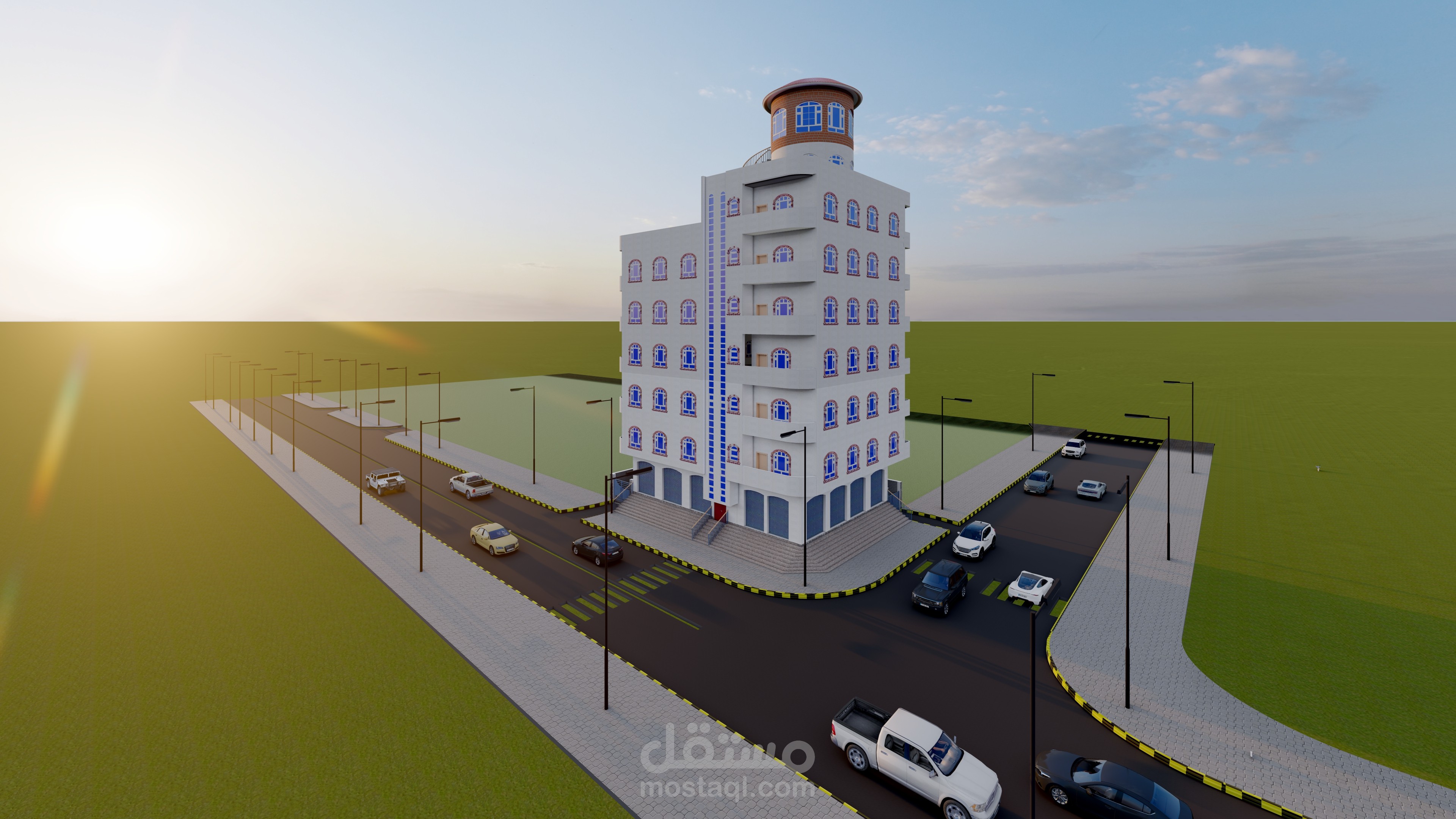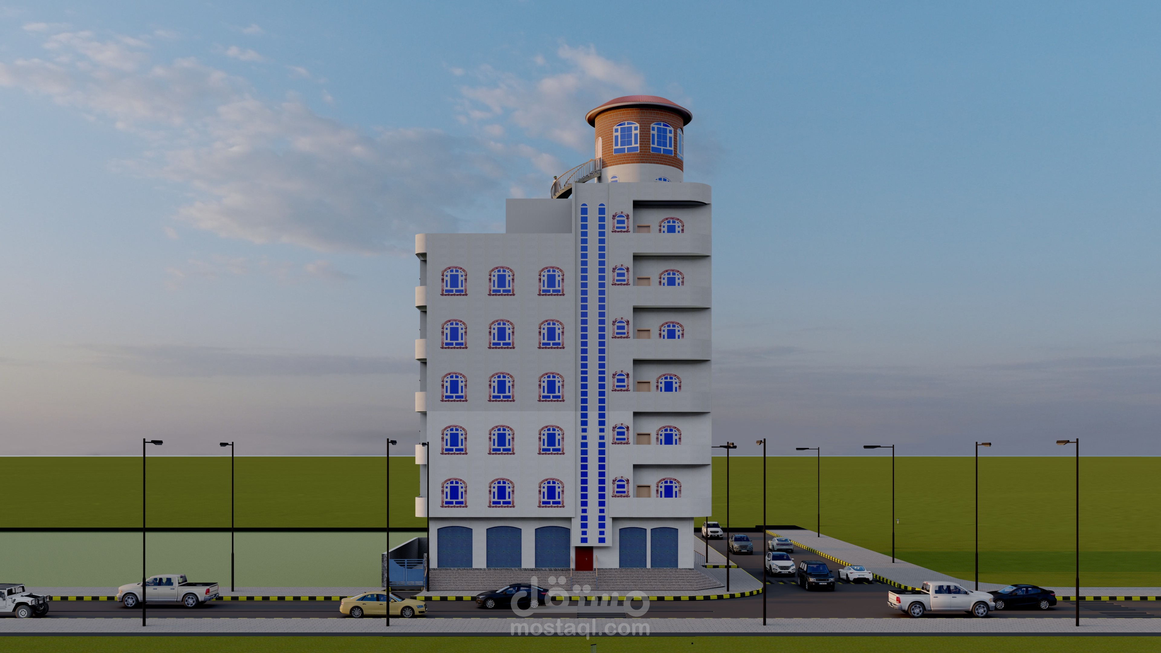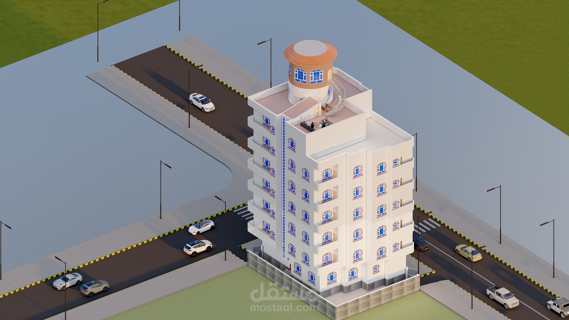 تصميم مجسم عماره خمسه ادور مع ملحق وطرمانه بشكل دائري حسب الذوق اليمني