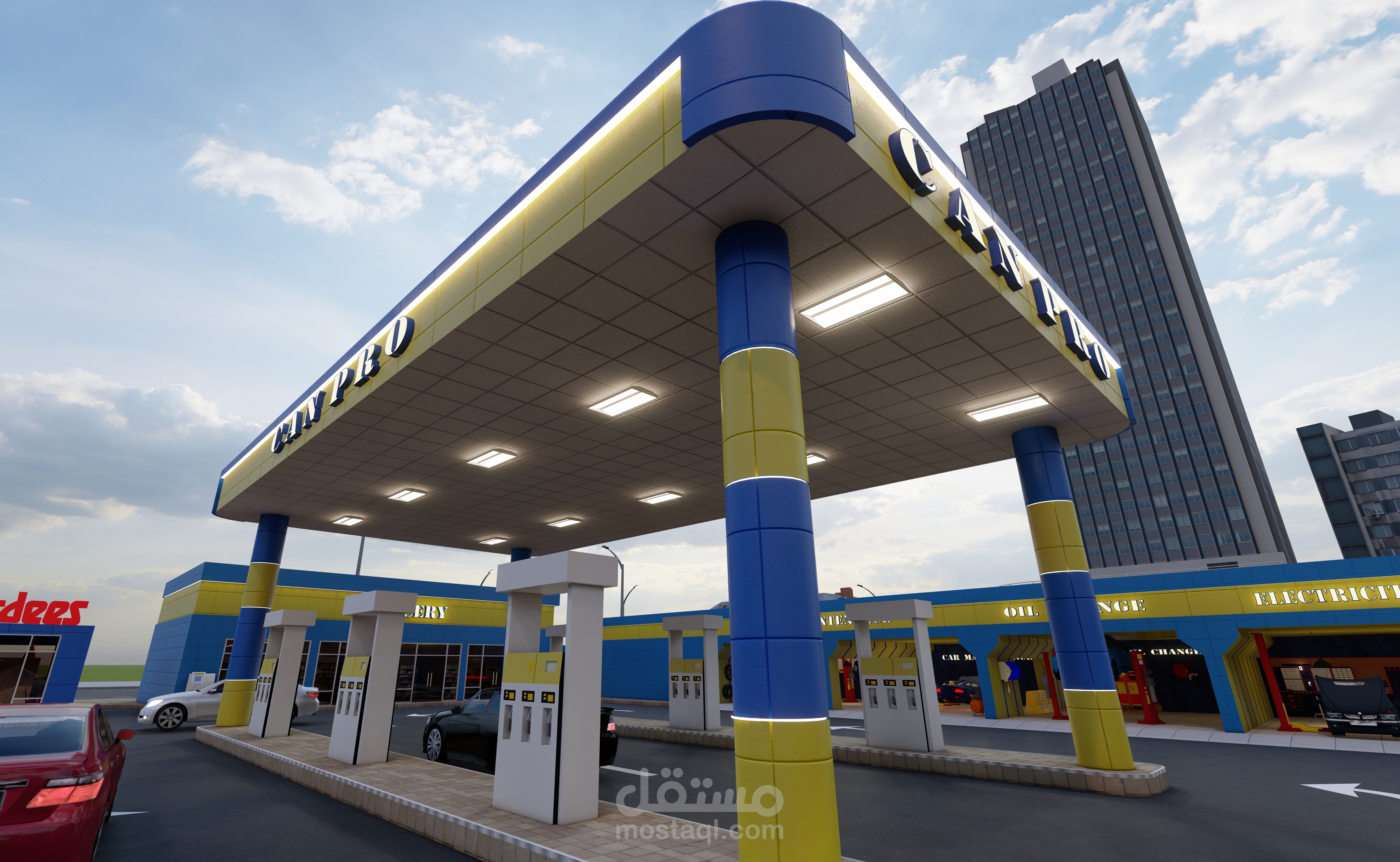 تصميم 3d لمحطة وقود