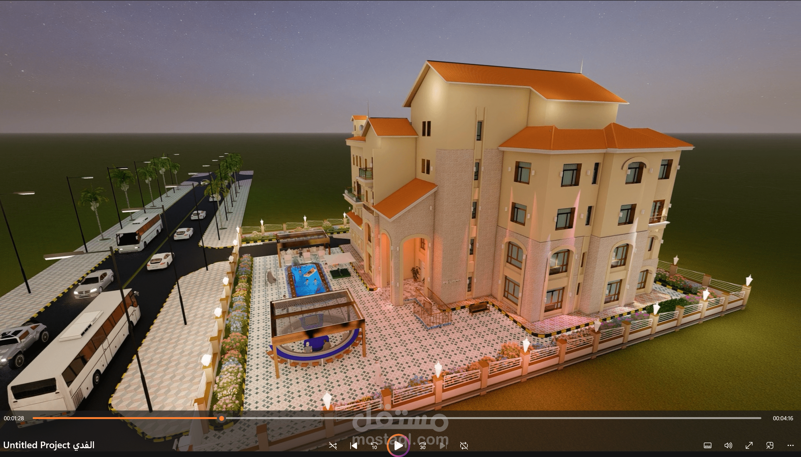 فديؤ مبنئ سكني مع المسبح والحديقه ومواقف سيارات في البدروم