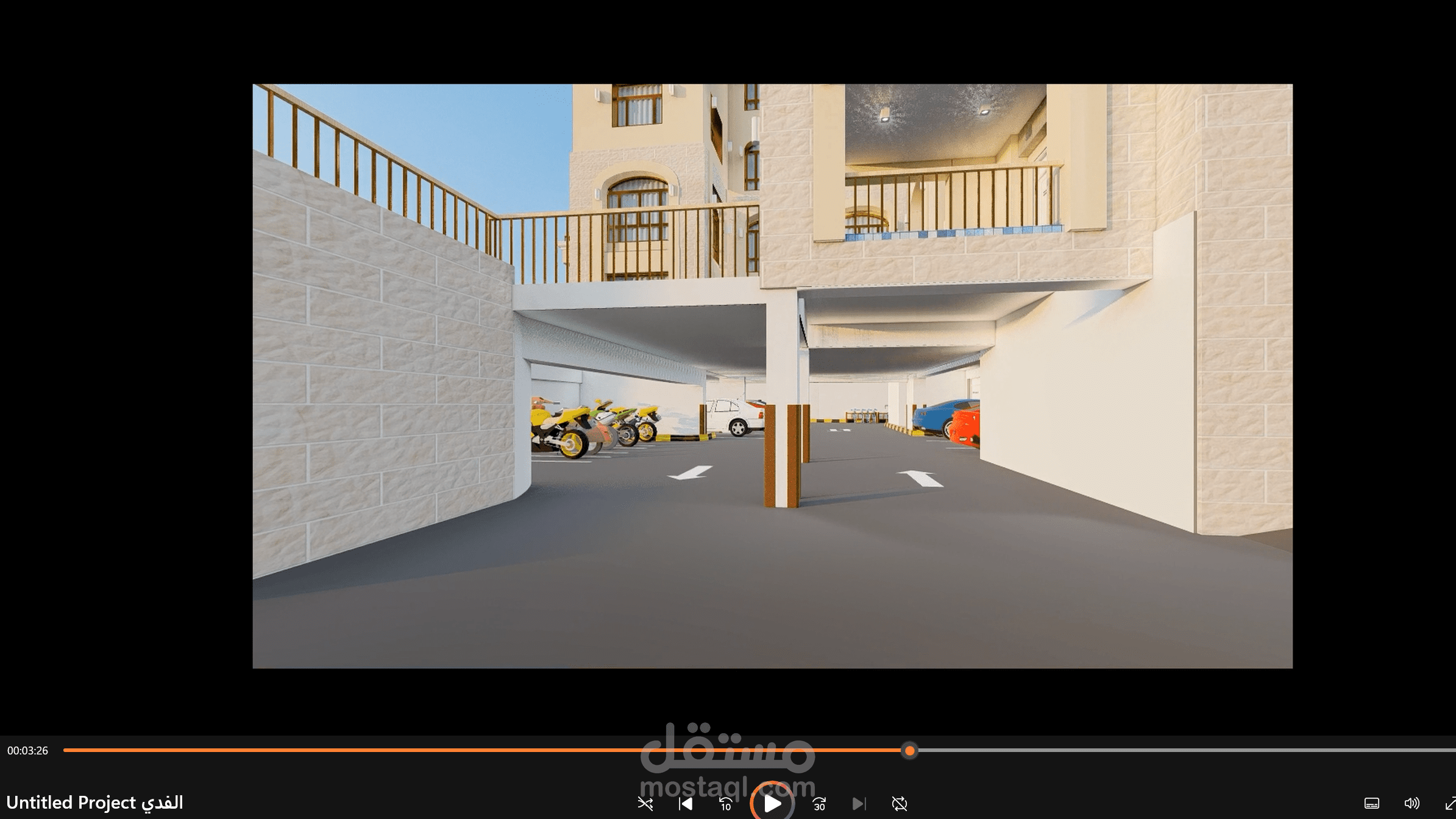 فديؤ مبنى سكني مع المسبح والحديقه ومواقف سيارات في البدروم نهاري داخل مبنى