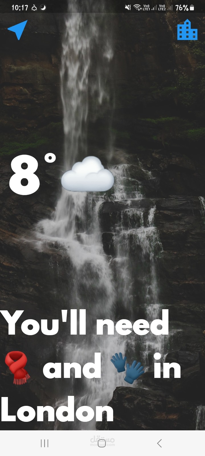 weather app based on user's location and the user can know the weather at any city he want by search by its name