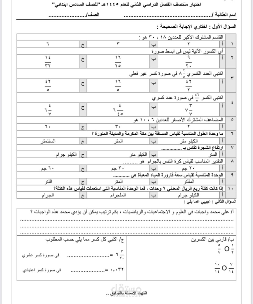 اسئلة اختبار