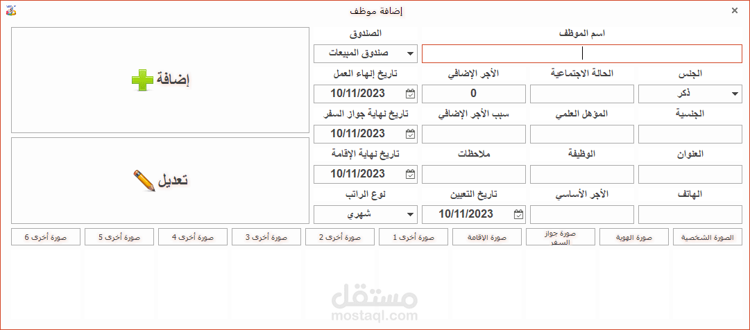 6- أقسام إضافية – موظفين – رواتب – تحويل رصيد – تصنيع – معصرة زيتون – صيانة – مطاعم