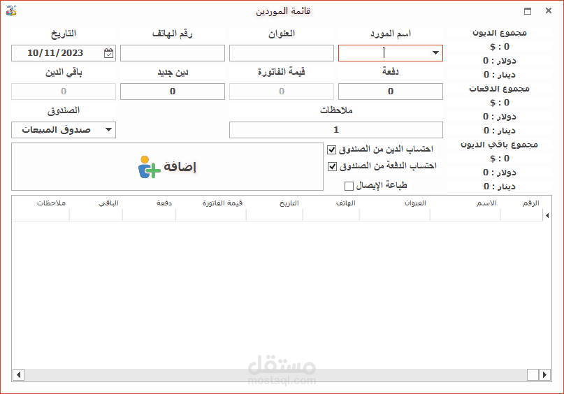 8- إضافة واجهتين جديدتين ( مختصر ديون الزبائن ) و ( مختصر ديون الموردين ) مع إمكانية طباعة الكشف