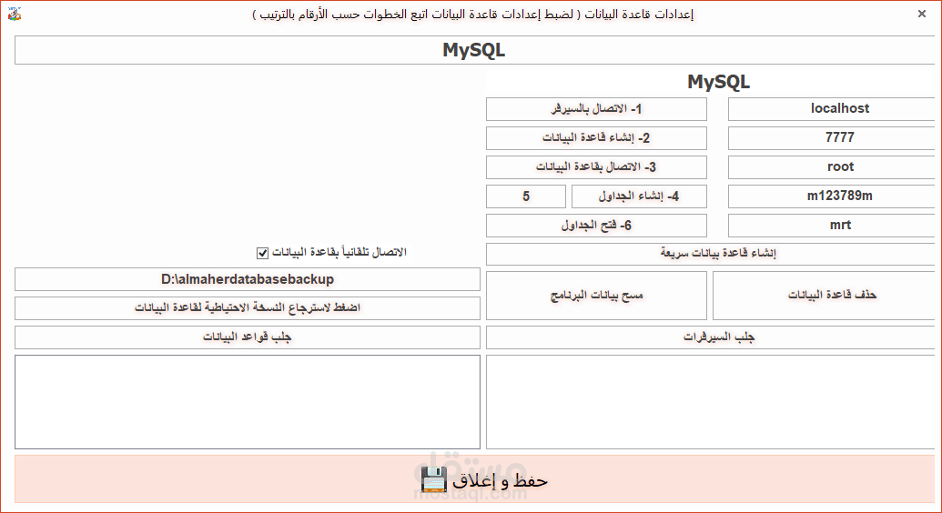 14- إمكانية مسح قاعدة البرنامج و إنشائها من جديد بضغطة زر واحدة و بالتالي يمكن تجريب البرنامج بسهولة و تصفير بياناته بضغطة واحدة
