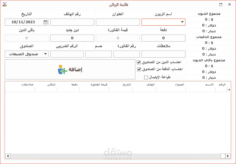 4- إمكانية طباعة سندات قبض سابقة في ديون الزبائن بتنسيق جميل و عدة قياسات لورق الطباعة