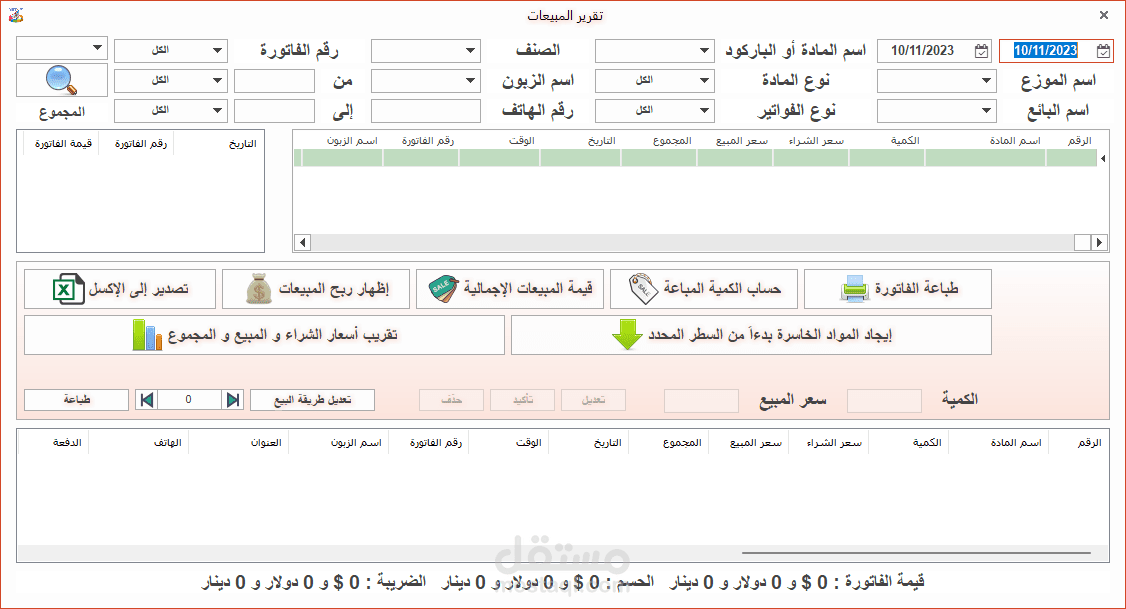4- تقارير شاملة للمبيعات و المشتريات و فلترة النتائج بطرق عديدة